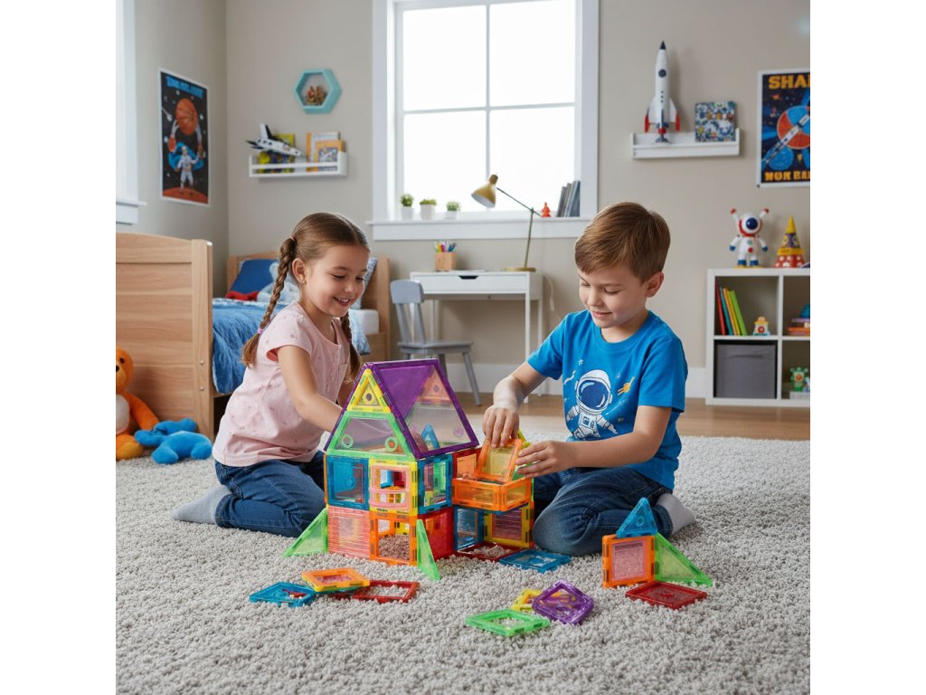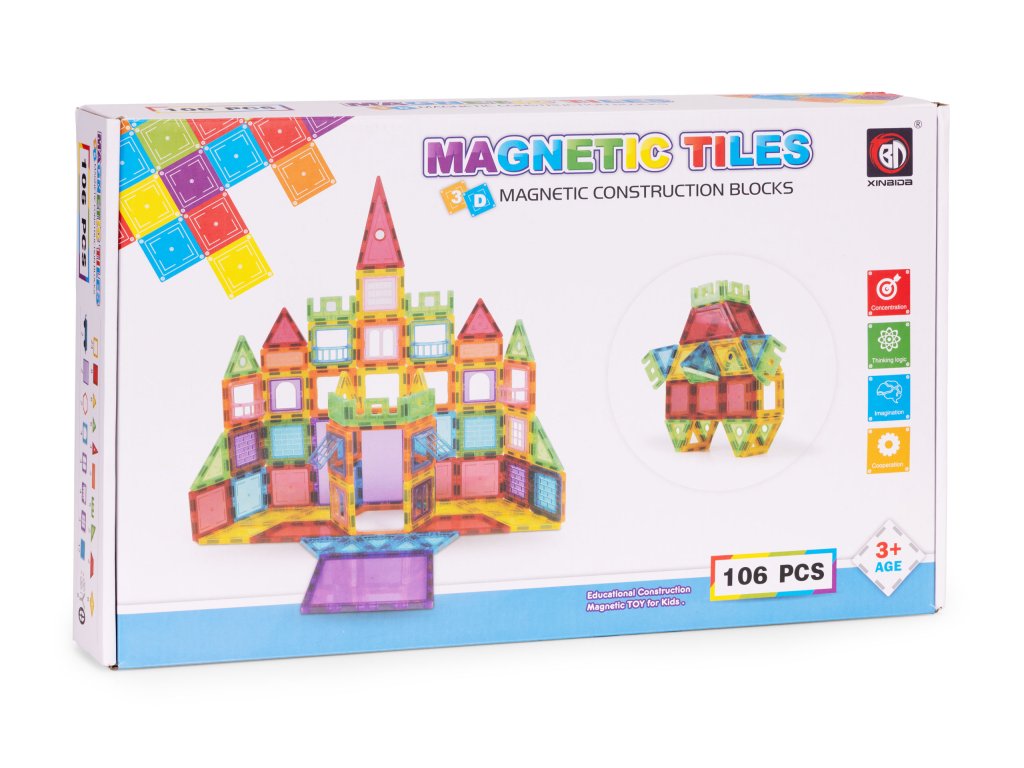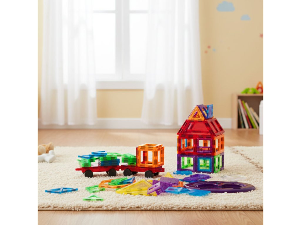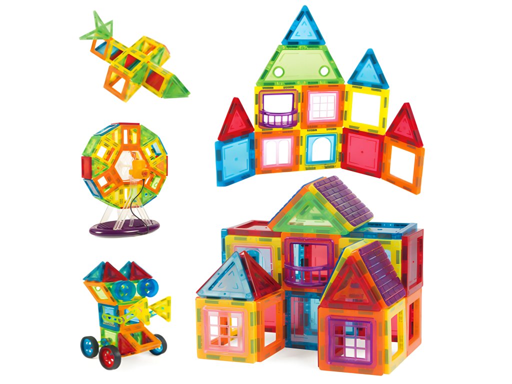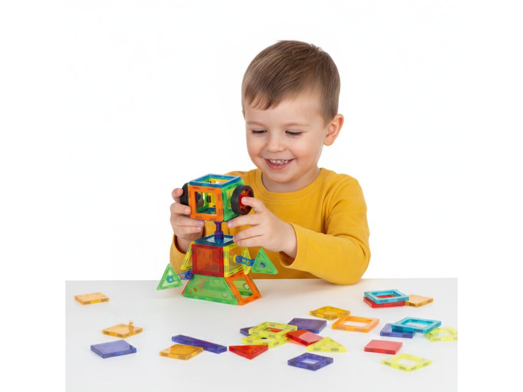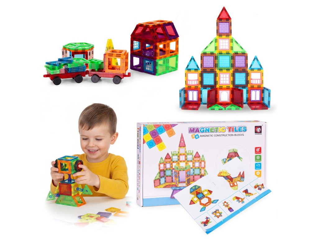 Tato sada magnetických bloků je ideální vývojovou hračkou; kreativita, logické myšlení a prostorová představivost . Děti si mohou vytvořit vlastní různé stavby - domy, věže, vozidla a geometrické tvary . Je to hra, která zároveň stimuluje smysly podporuje manuální vývoj a nezávislé experimentování. Stavebnice je vhodná pro konstrukci jednoduchých forem i složitějších 3D projektů a poskytuje mnoho hodin zábavy inteligentní a poutavá hra .