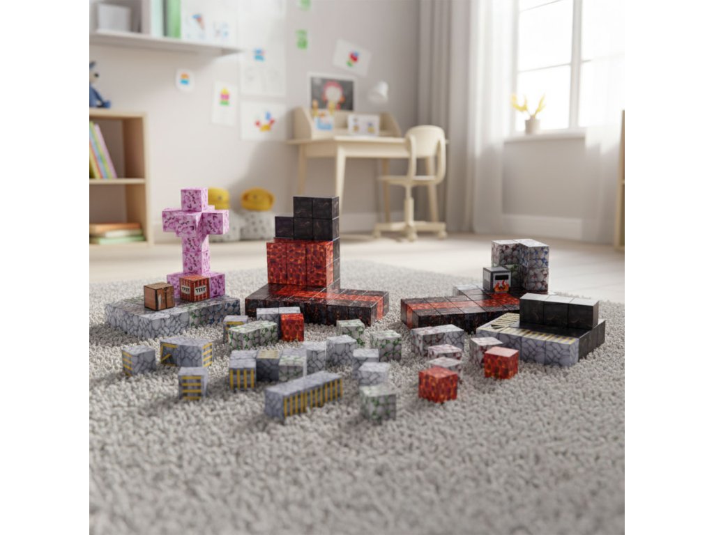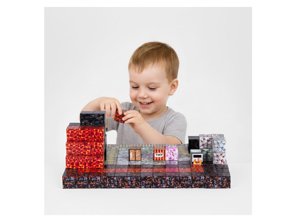 Kostky jsou propojeny vestavěné magnety, které způsobují, že se prvky rychle a automaticky přitahují. Je to jednoduché, intuitivní forma hry, což dětem přináší uspokojení a umožňuje jim soustředit se na tvůrčí práci.