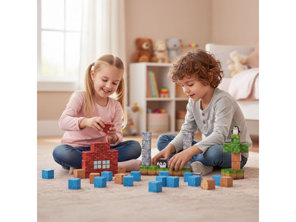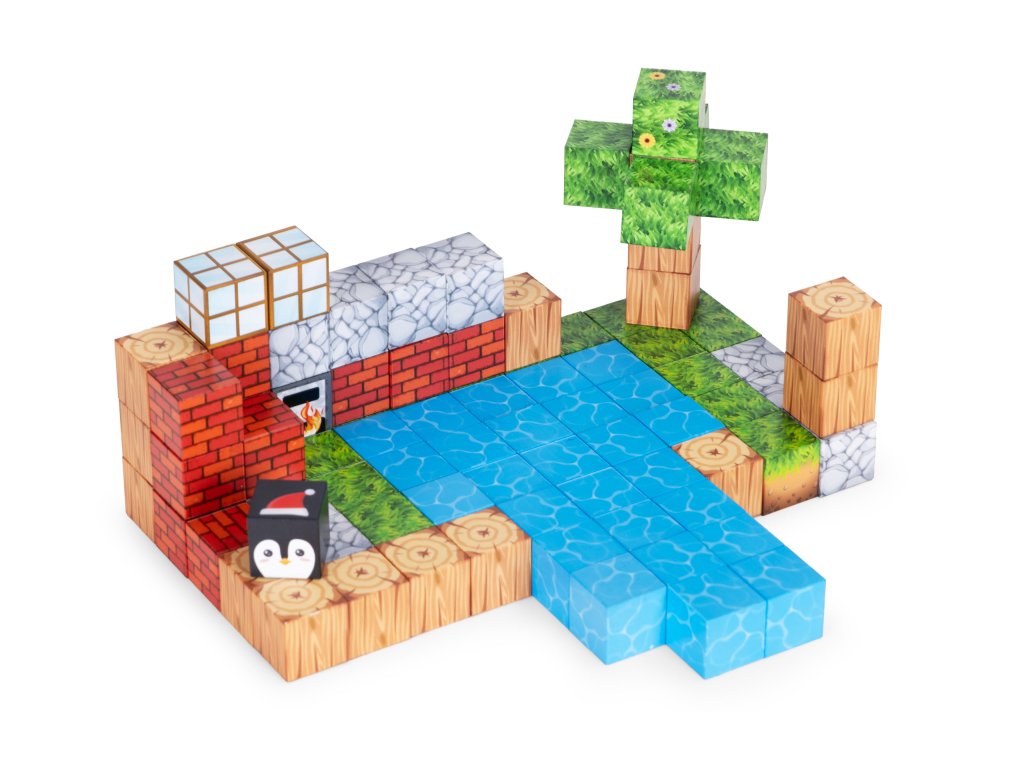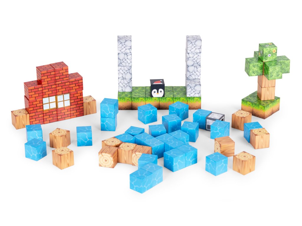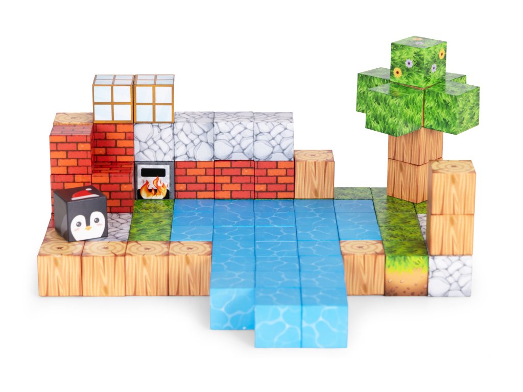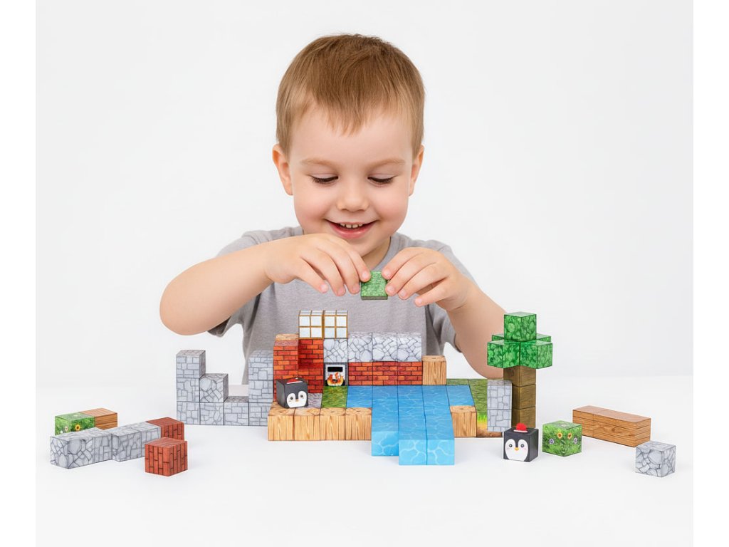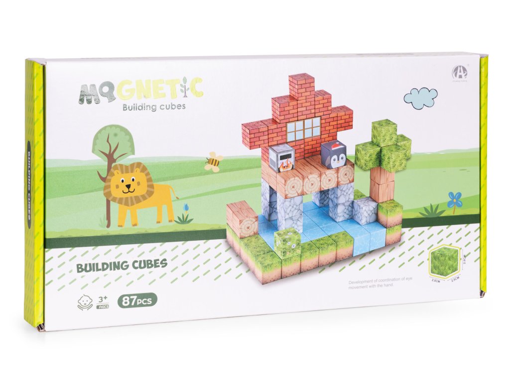 Kostky jsou propojeny vestavěné magnety, které způsobují, že se prvky rychle a automaticky přitahují. Je to jednoduché, intuitivní forma hry, což dětem přináší uspokojení a umožňuje jim soustředit se na tvůrčí práci.