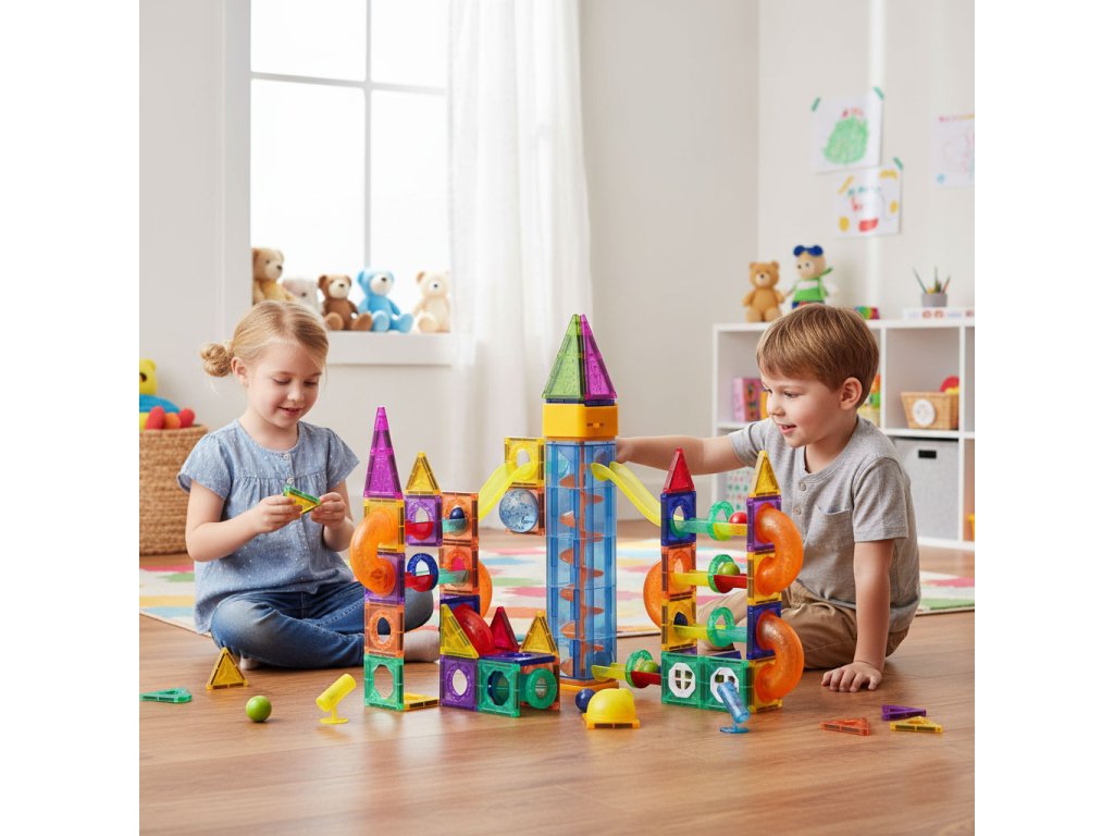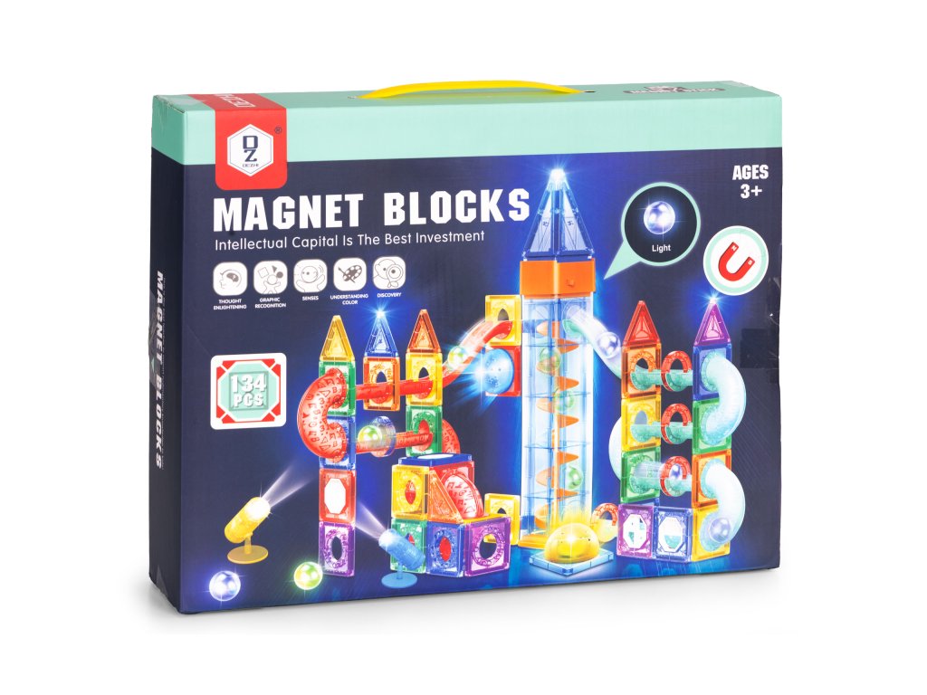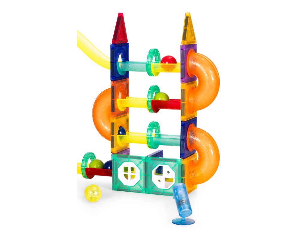 Tato sada magnetických bloků je ideální vývojovou hračkou; kreativita, logické myšlení a prostorová představivost . Děti si mohou vytvořit vlastní dynamické trasy s tunely a sjezdy a zároveň se naučíte principy fyziky a plánování. Je to zábava a zároveň stimuluje smysly podporuje manuální vývoj a nezávislé experimentování. Stavebnice je vhodná pro konstrukci jednoduchých forem i složitějších 3D projektů a poskytuje mnoho hodin zábavy inteligentní a poutavá hra .