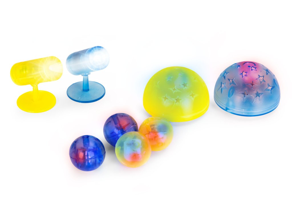 Vybrané prvky množiny jsou vybaveny barevné LED diody které během hry působivě osvětlují struktury. Světlo přitahuje dětskou pozornost, podněcuje představivost a způsobuje, že každá stavba vypadá jako.. kouzelný pohádkový zámek . Hračka je skvělá i po setmění a vytváří v dětském pokoji zvláštní atmosféru.