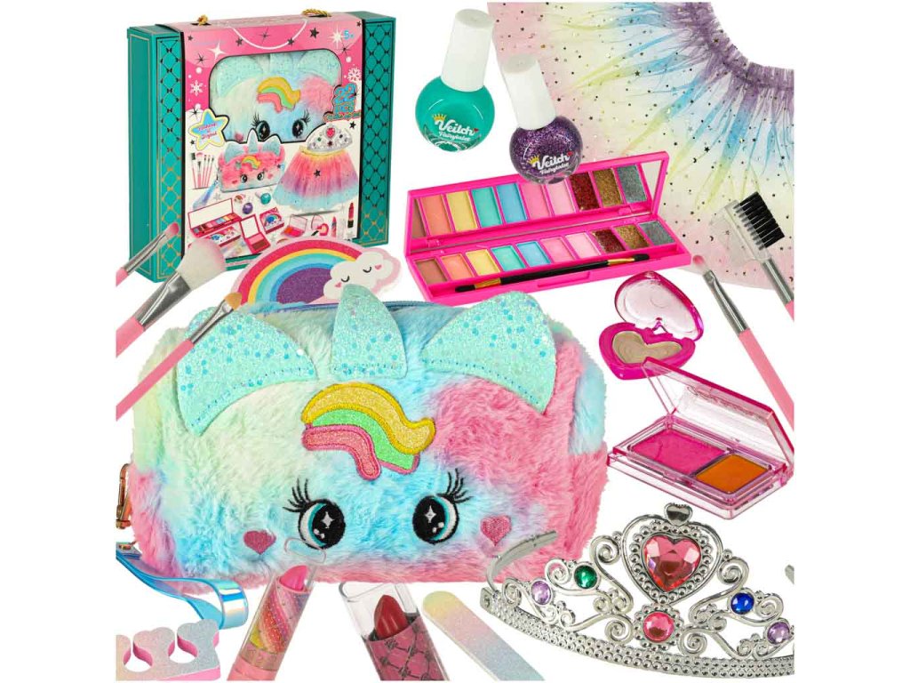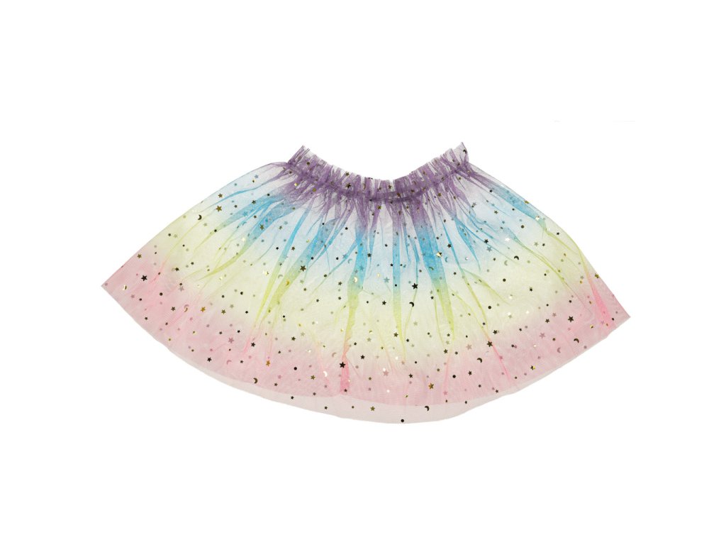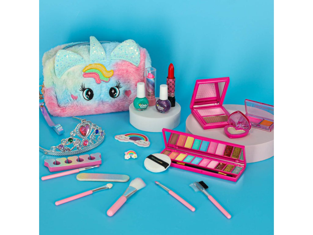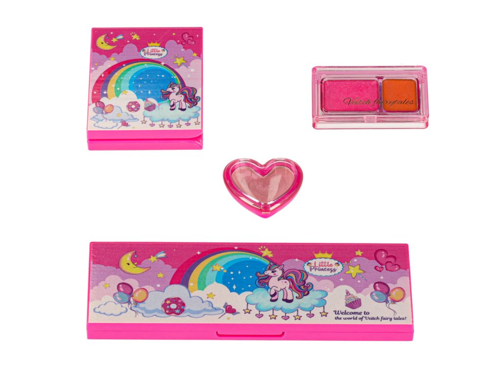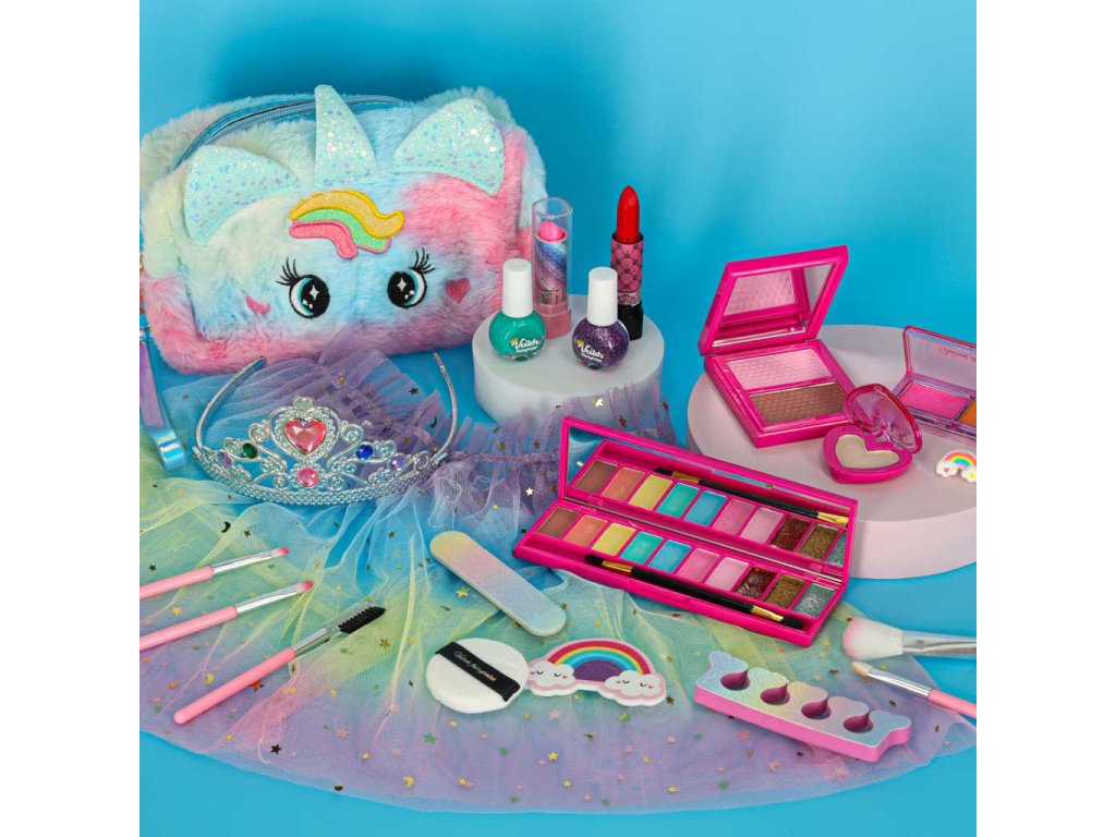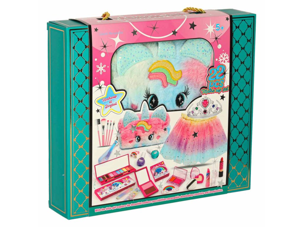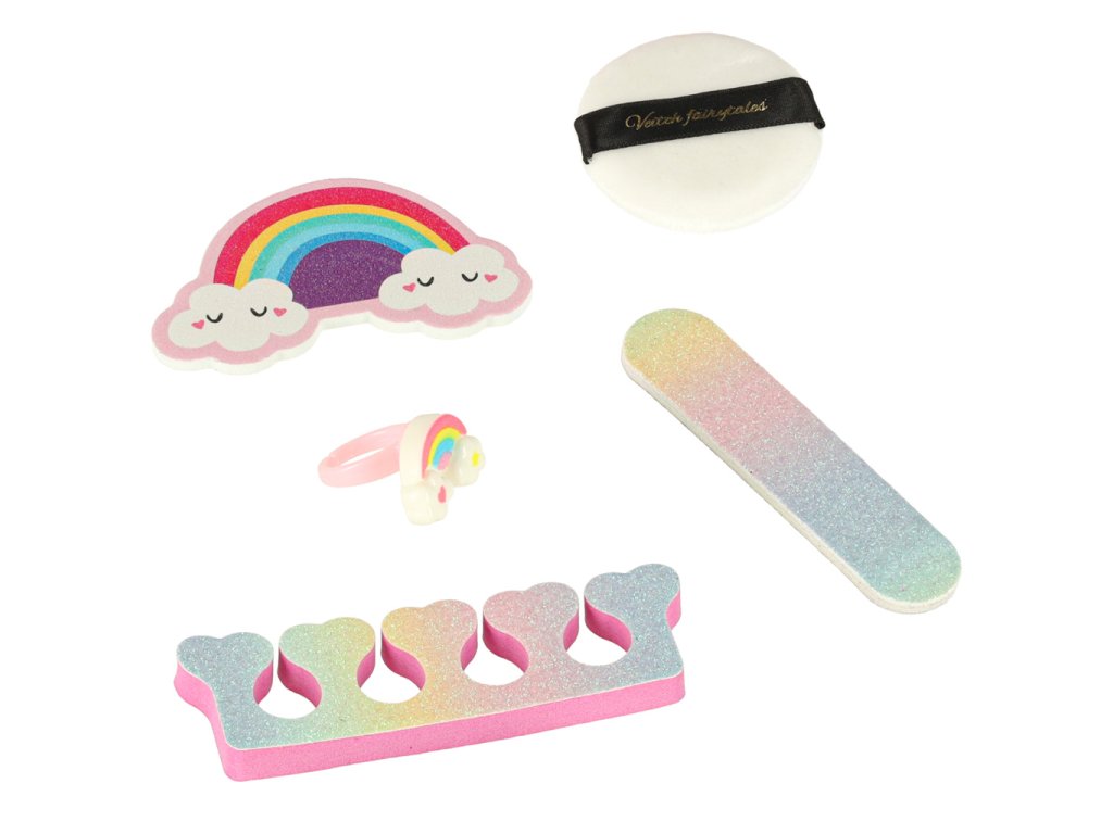 Zábavná duhová sada pro malé princezny! Obsahuje duhovou sukni, kosmetickou taštičku, korunku a spoustu barevných doplňků. Ideální pro kreativní hru a rozvoj představivosti. Dárková krabička s lesklými ozdobami. Potěší malé holčičky od 5 let.