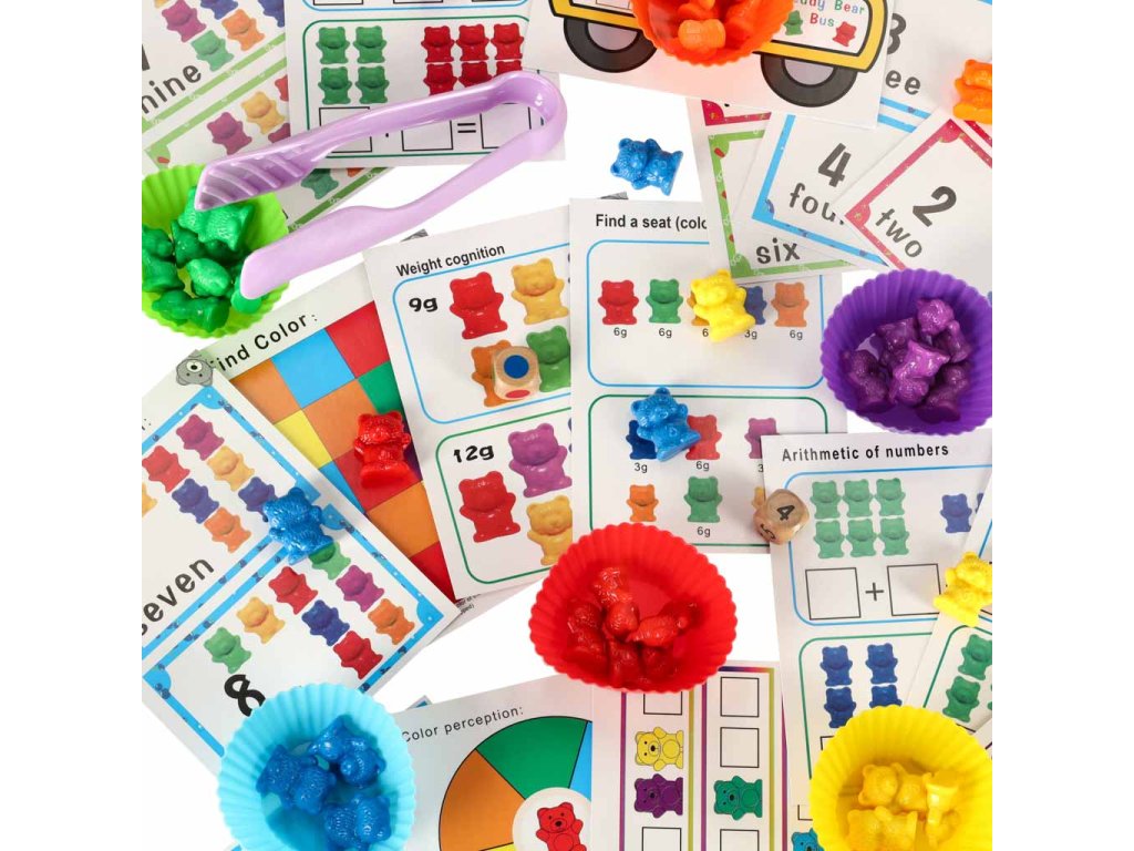 Barevní plyšoví medvídci se postarají o Učení matematiky se stává skutečným potěšením. a batole, aby si prohloubilo své znalosti o světě.