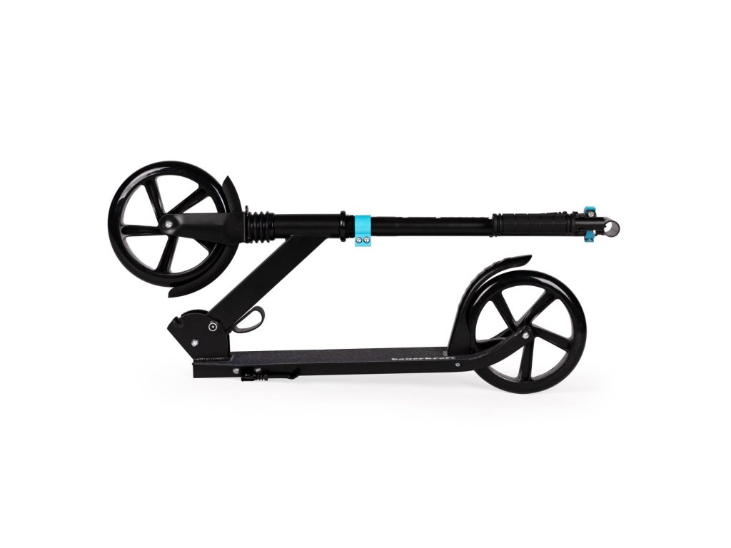 - Praktický systém skladania riadidiel - umožňuje rýchle zloženie kolobežky do kompaktnej veľkosti. Stabilné závesy i zabezpečenie zvýšenie bezpečnosti.
