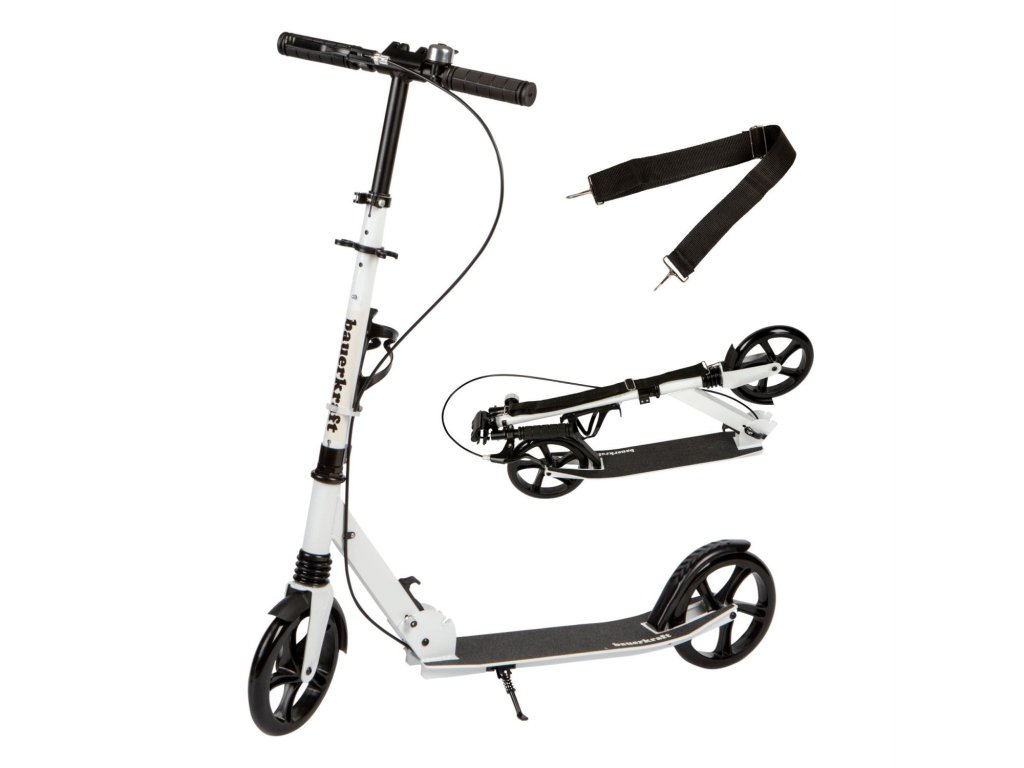 - Praktická noha umožňuje bezpečne odložiť kolobežku kdekoľvek bez rizika jej prevrátenia.