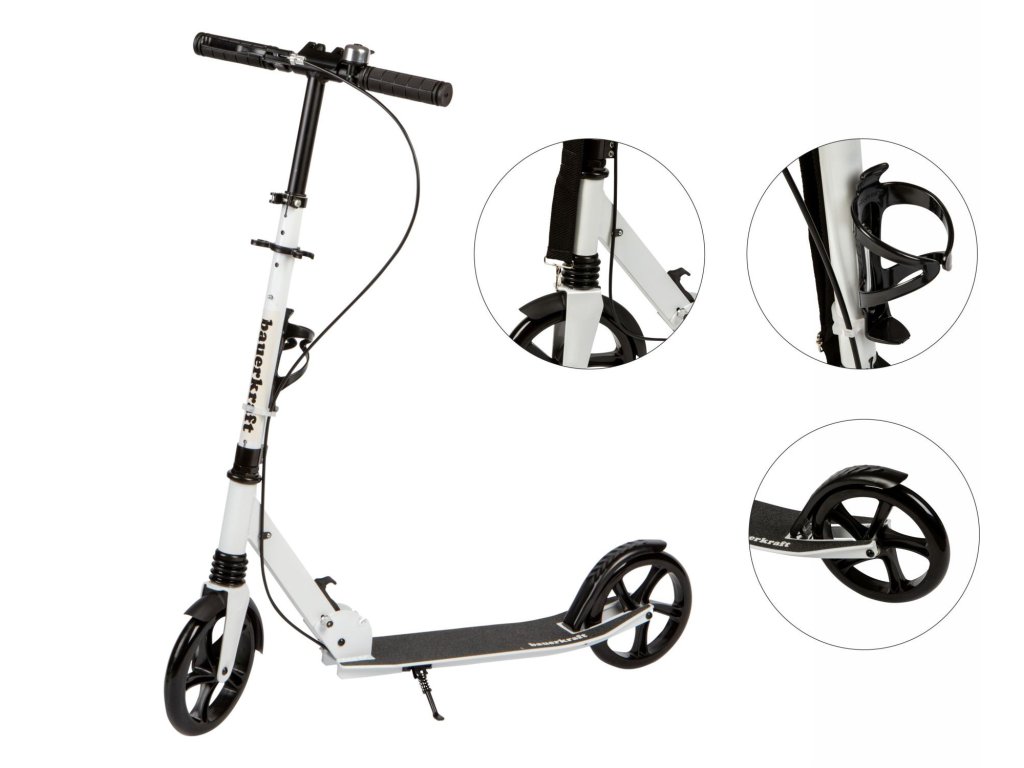 Mestský skúter je vynikajúcou voľbou pre dochádzanie do školy alebo jazdy vo voľnom čase v okolí mesta. Vďaka veľkým kolesám a systém odpruženia, skvelé na asfaltové cesty, chodníky a cyklotrasy. Predný pružinový tlmič znižuje otrasy, zvyšuje komfort jazdy aj na nerovnom povrchu. Zadné koleso s blatníkom nielenže zlepšuje vzhľad, ale predovšetkým chráni odev pred postriekaním vodou alebo blatom. Zabudovaný držiak na fľašu je praktický detail, vďaka ktorému bude mať vaše dieťa vždy po ruke nápoj - najmä na dlhších cestách. Dôverujte osvedčenému dizajnu, ktorý podporuje každodenné činnosti dieťaťa bezpečným spôsobom.