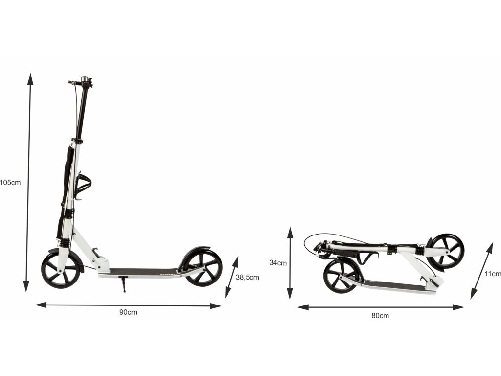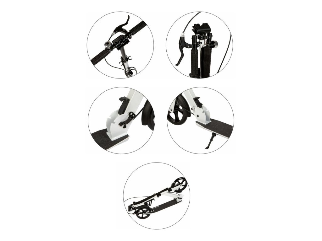- Praktický systém skladania riadidiel - umožňuje rýchle zloženie kolobežky do kompaktnej veľkosti. Stabilné závesy i zabezpečenie zvýšenie bezpečnosti.