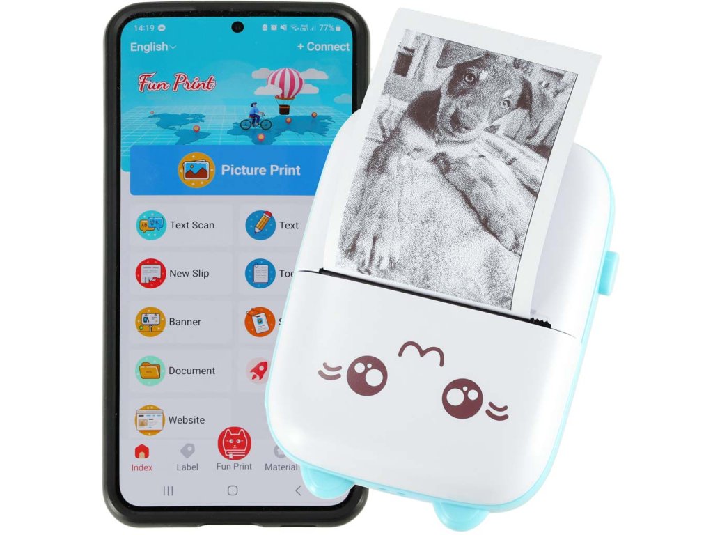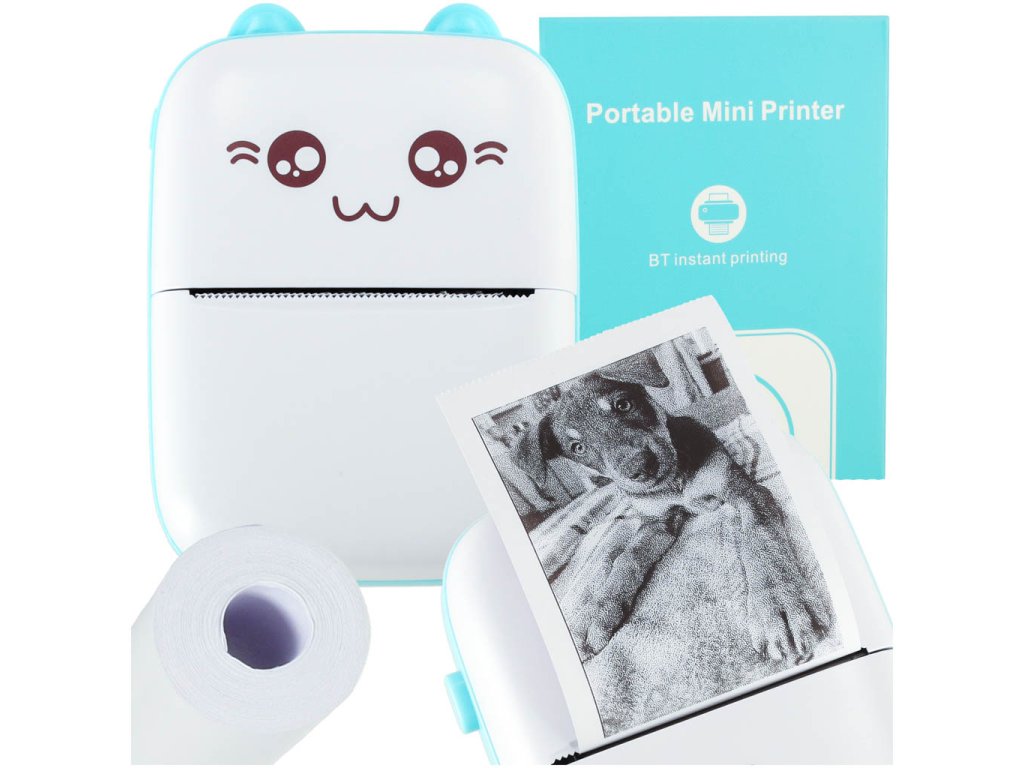 Mini termotiskárna štítků + USB kabel modrá kočka