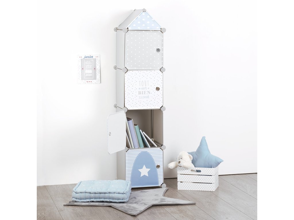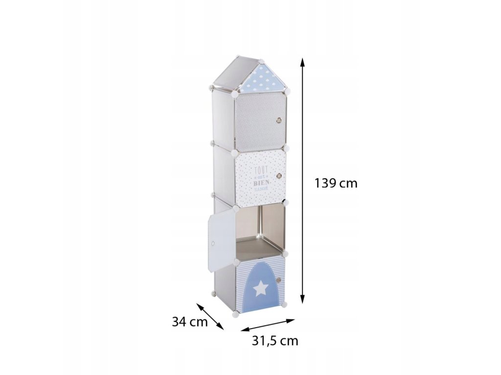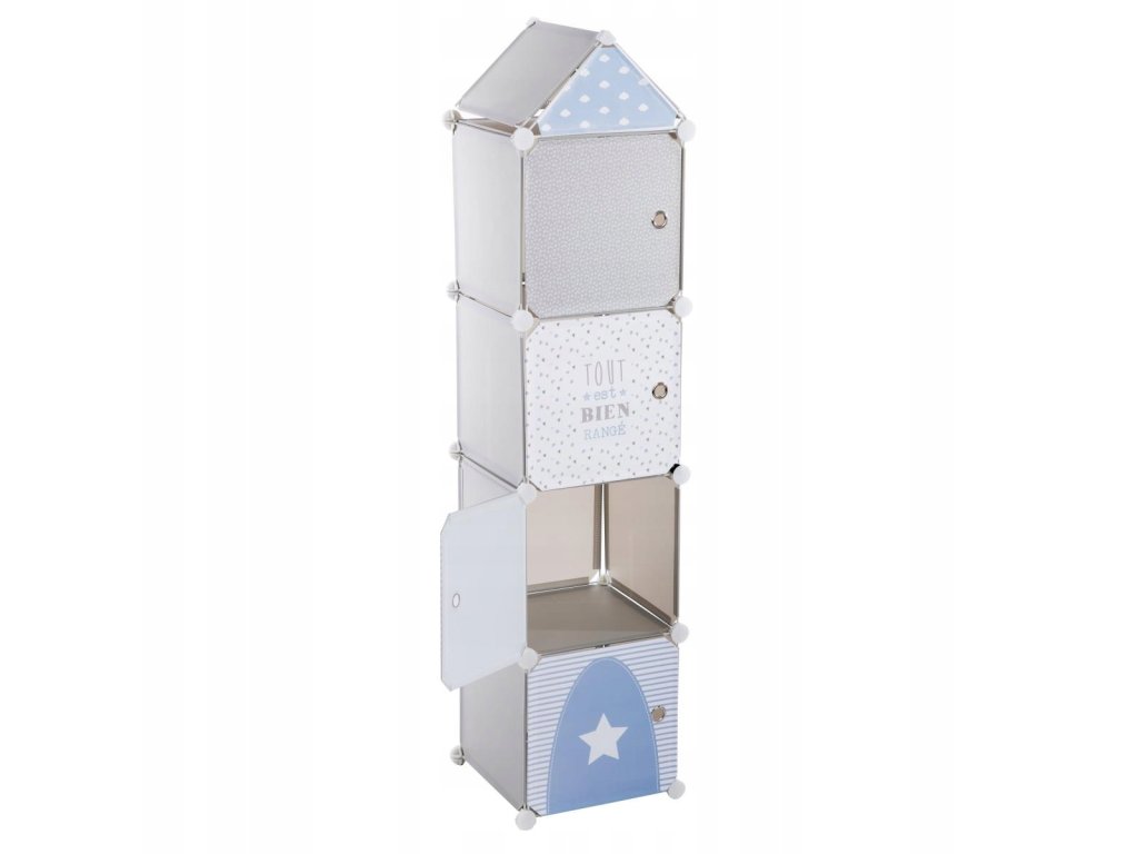 Obsahuje 4 zásuvky pro skladování. Je originální a praktický pro všechny dětské pokoje. Pomáhá udržovat pořádek , máestetický vzhled, veselý design a odolný materiál. Hodí se do dívčích i chlapeckých pokojů, protože se dodává ve dvou barvách - růžové a šedé.