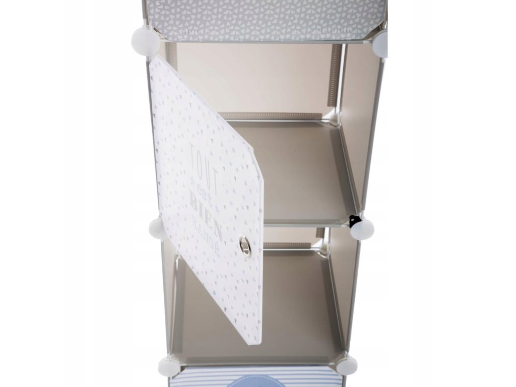 Šatní skříň s úložnými policemi. Ideální polohapro skladování drobnosti, věci, hračky a oblíbené předměty.