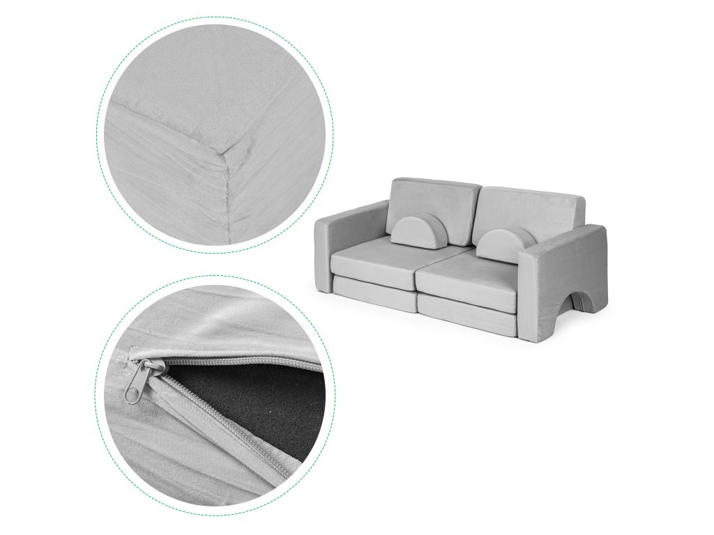 Modulární rozkládací pohovka pro děti velká 2místná DIY 10 měkkých polštářů - šedá ECOTOYS