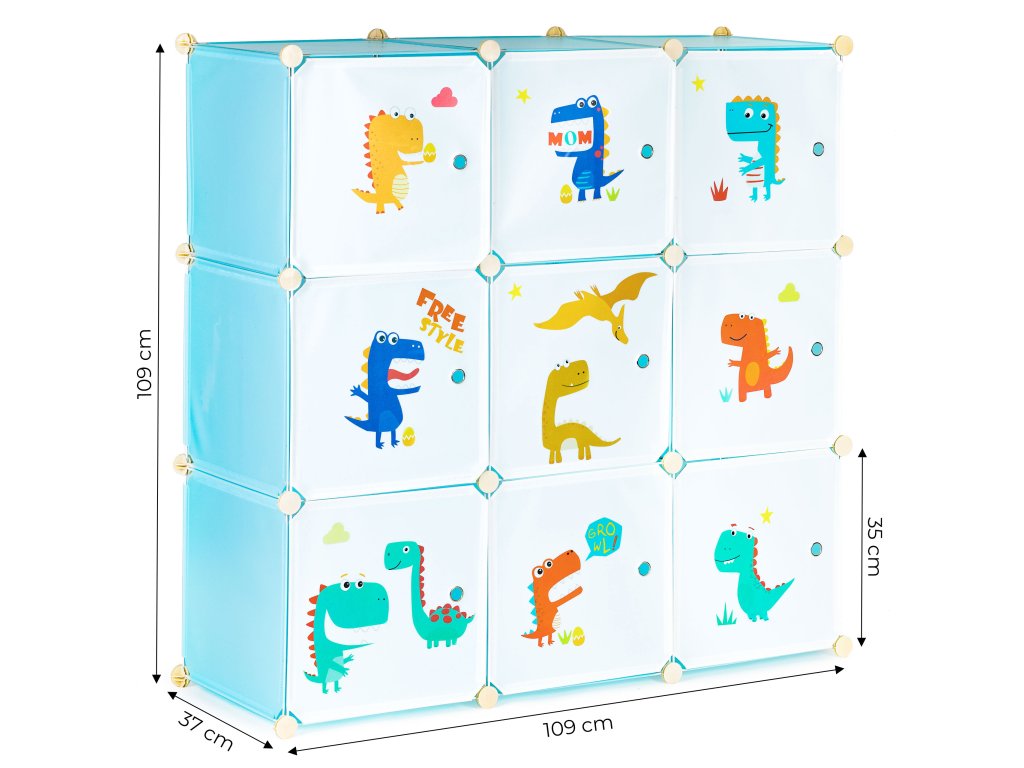 Modulová detská skrinka 9 políčok s veselými dvierkami