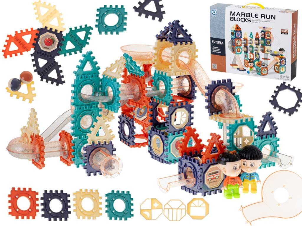 Sledování pohybu kuliček po vybudované dráze s mnoha tunely stimuluje vizuální vnímání a rozvíjí pozorovací schopnosti .