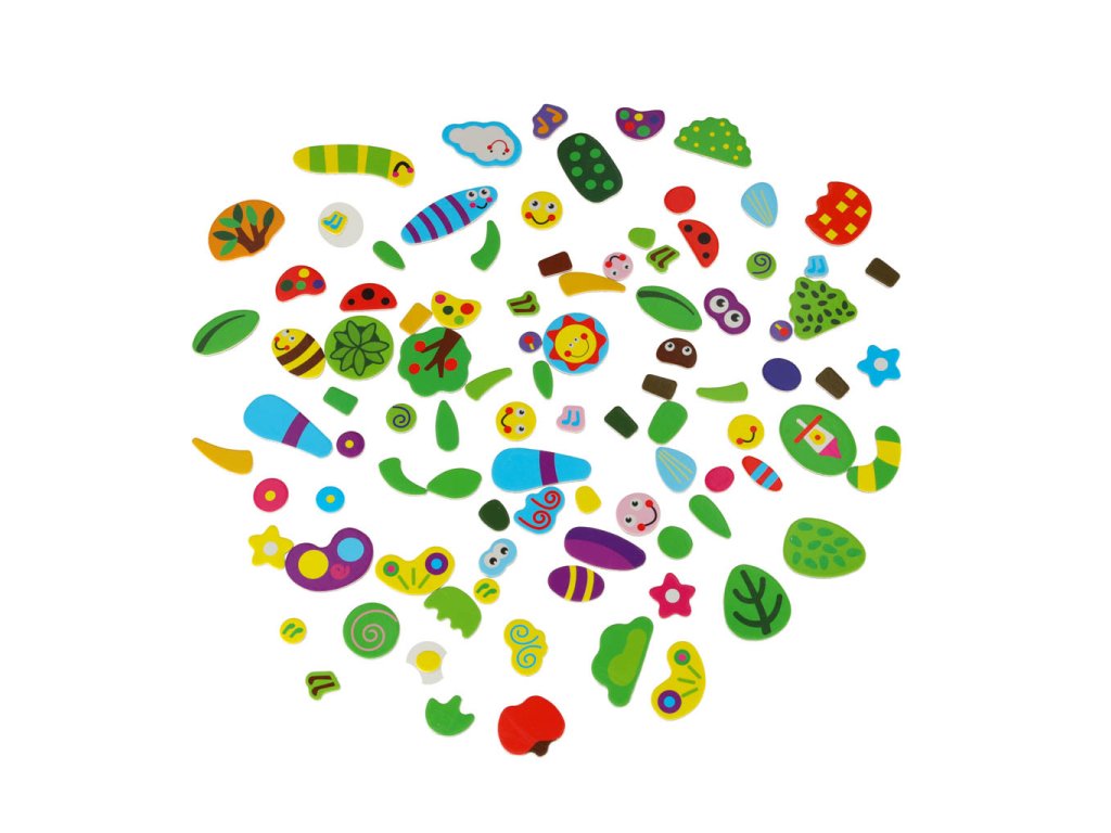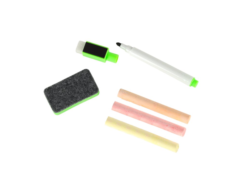- oboustranná deska Sada přibližně 100 magnetůbarevné křídyhoubyznačkaPokyny se vzory skládaček