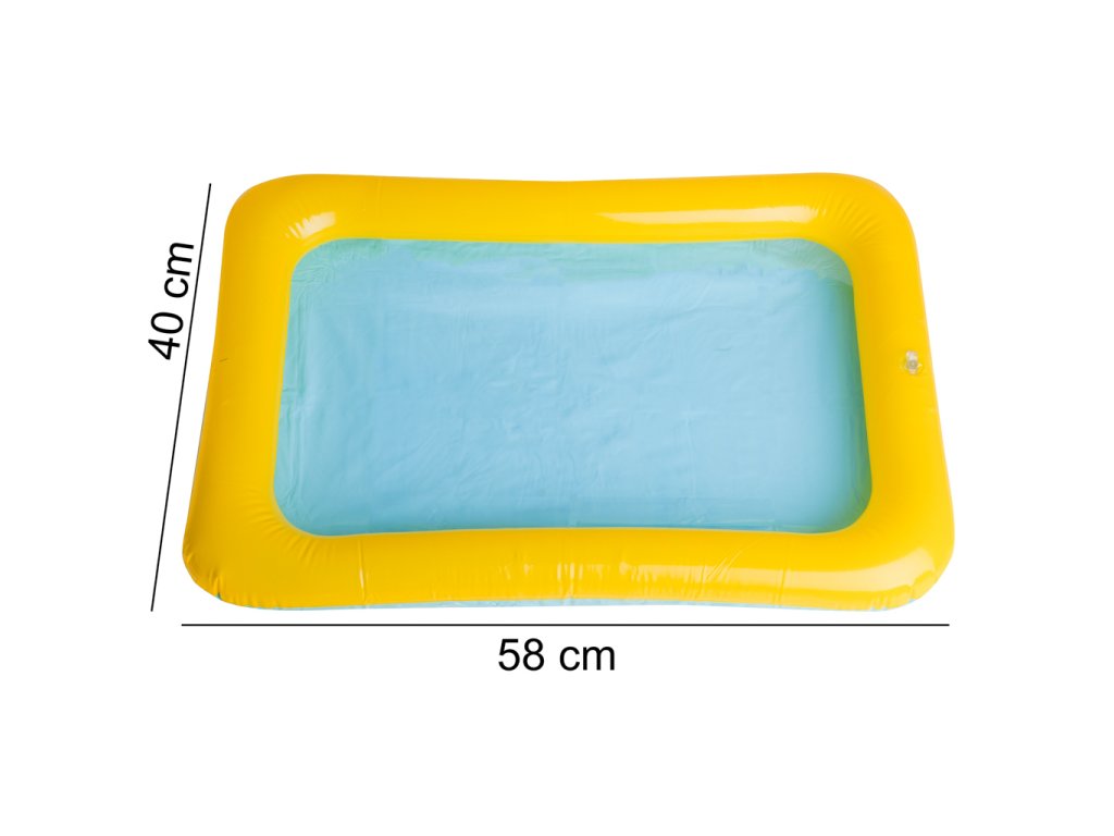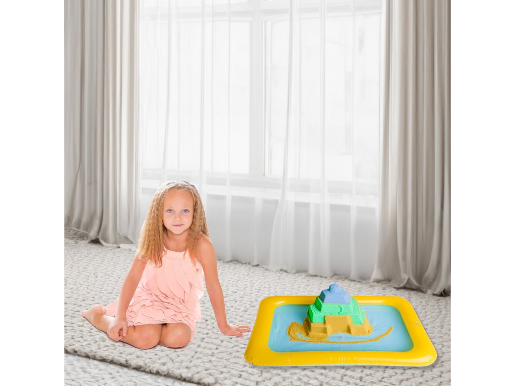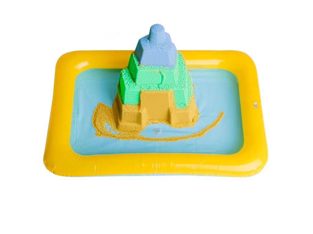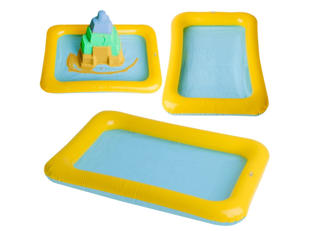 Nafukovací pískoviště pro kreativní hru s kinetickým pískem. Snadno se nafoukne a po hře jednoduše vyfoukne. Ideální na pláž, zahradu nebo domů. Voděodolné, vyrobené z PVC plastu. Rozměry: 56 cm x 40 cm. K dispozici v různých barvách.