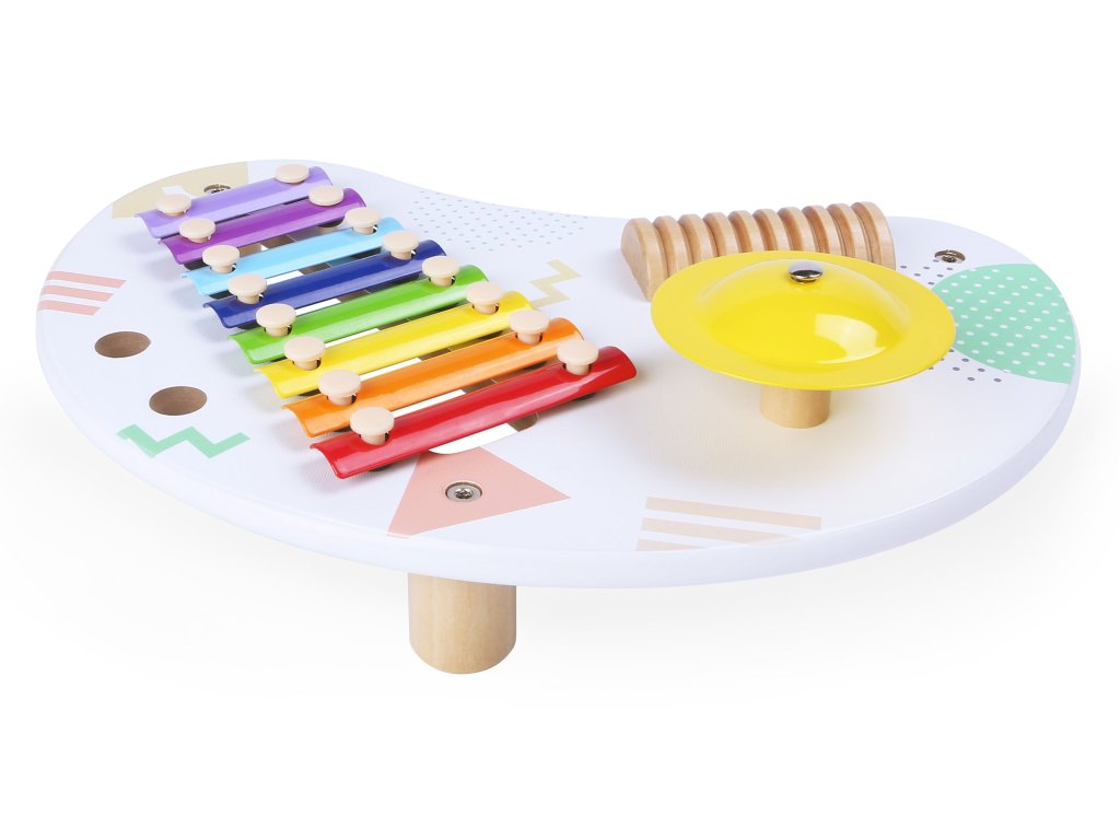 Rozvíjející se stolek se 3 hudebními nástroji pro děti od 18 měsíců. Pomáhá rozvíjet dovednosti a smysl pro rytmus. Ideální dárek s bezpečným designem a poutavou grafikou. Hmotnost 1,3 kg, rozměry 35x24x10 cm. Značka ECOTOYS.