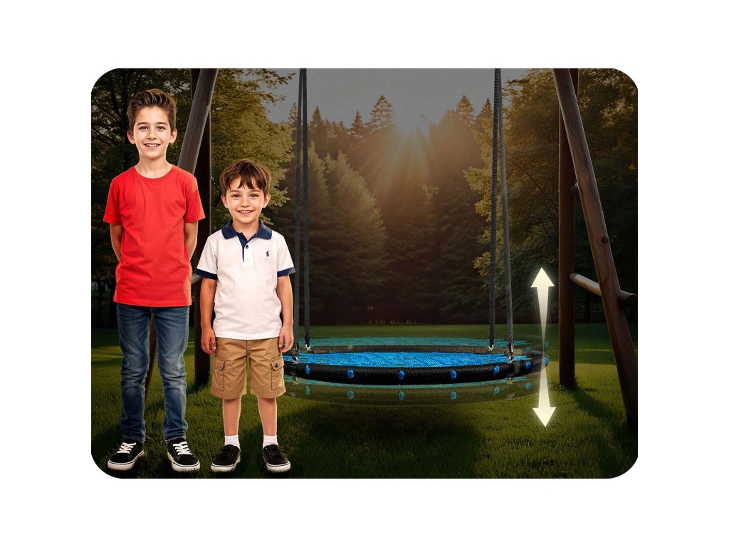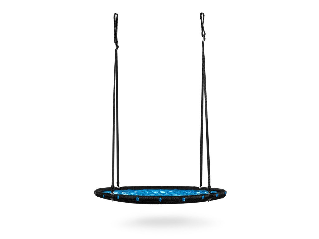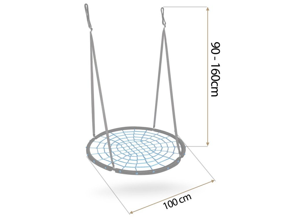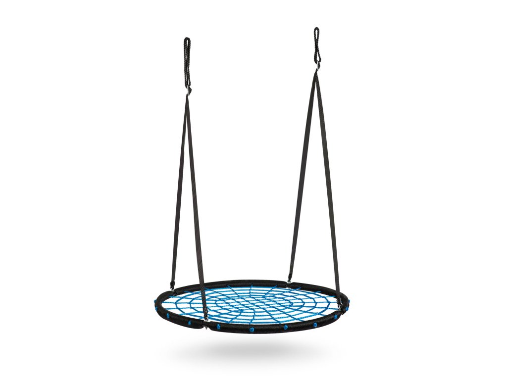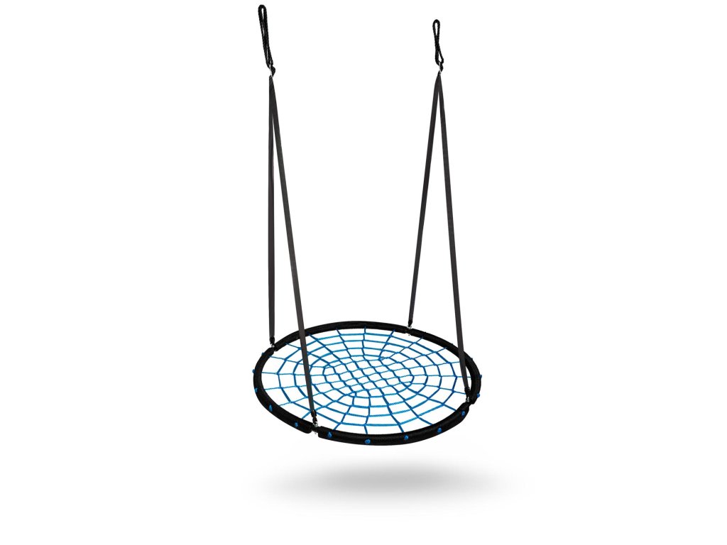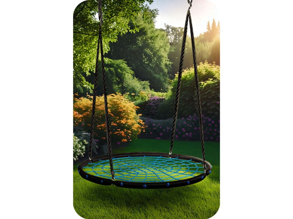 Hojdačka s oceľovým rámom pokryté ochranným opletom, vyrobeným zo silného pavúčieho lana a hrubých závesných lán. Poskytuje bezpečnosť, stabilitu a odolnosť.