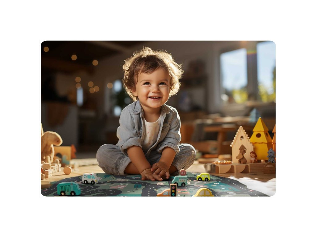 Slouží také jako hrací podložka a později jako úložný prostor.