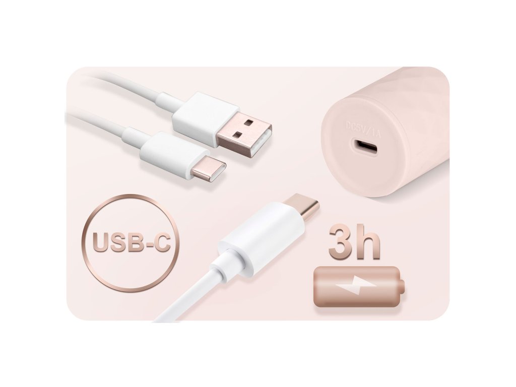 Baterie s kapacitou 1200 mAh poskytuje kartáčku dlouhou dobu provozudo 3 hodin na jedno nabití, které se provádí pomocí nabíječky USB-C. V zájmu úspory energie se zařízení po 30 minutách automaticky vypne.