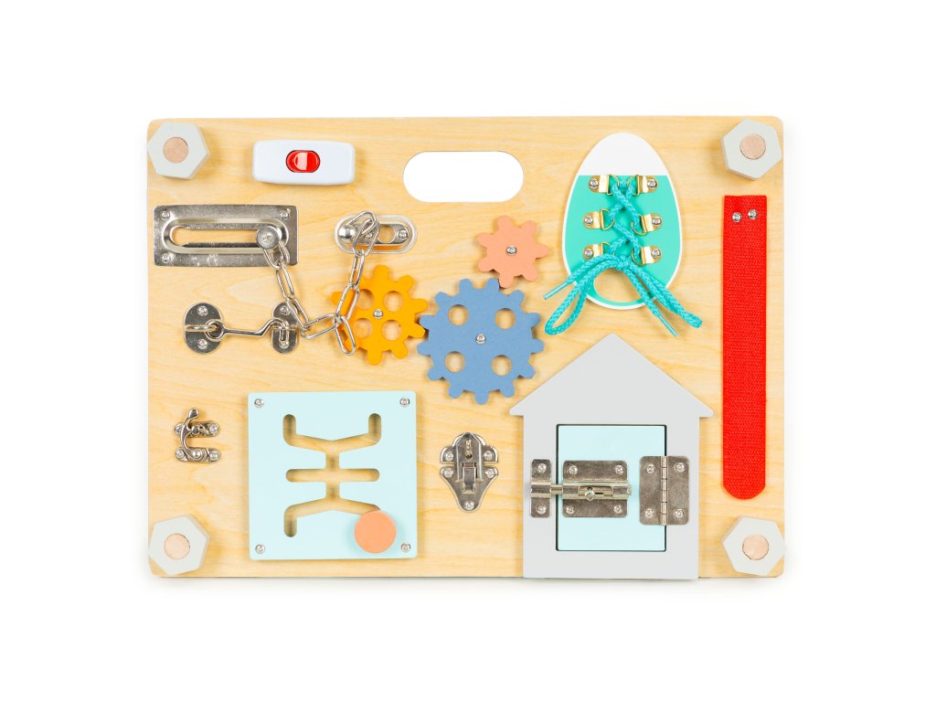 Naša drevená manipulačná doska je pozoruhodný výrobok, ktorý prebudí zmysly vášho dieťaťa a mu poskytne fascinujúce zábava spojená s rozvojom ich manuálnych zručností.
