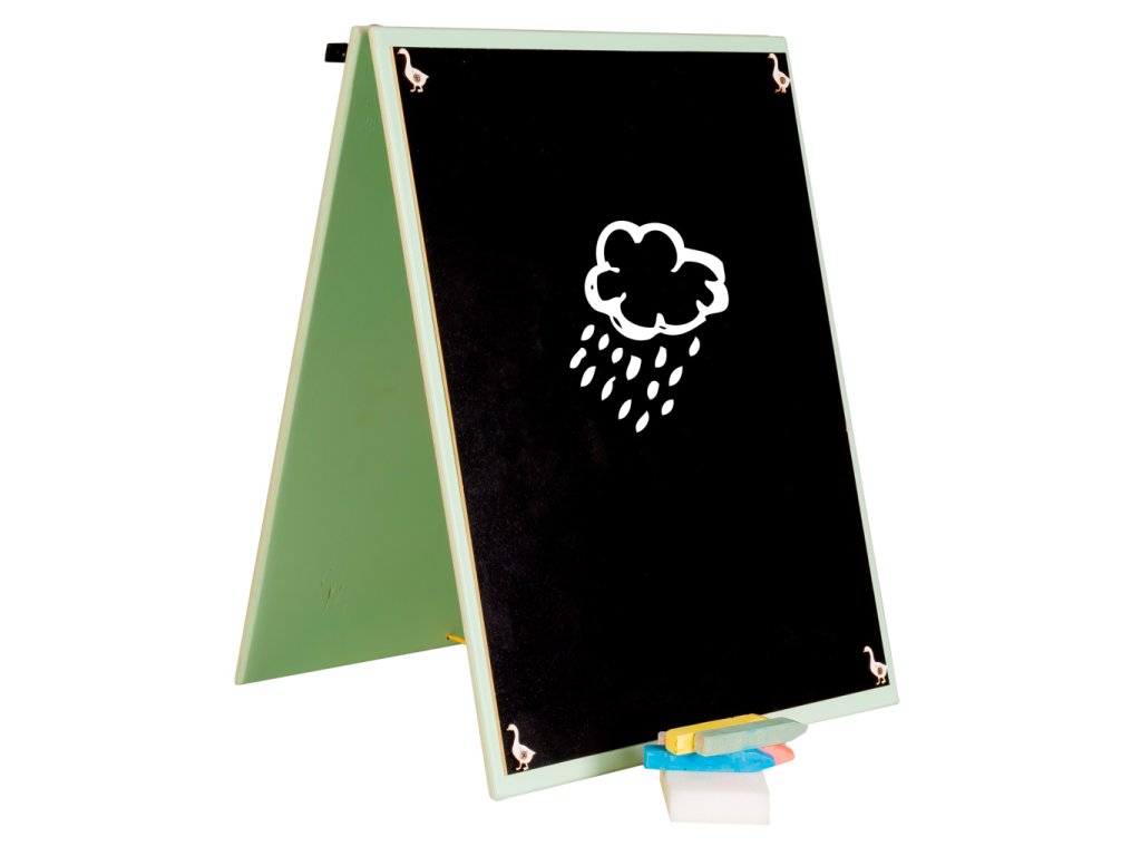Ale to není všechno! V případě, že má vaše dítě také náladu na škrábání druhá strana výrobku je tabule s křídami . A je dodáván s křídou a houbičkou na mazání - takže vše je hned po ruce!