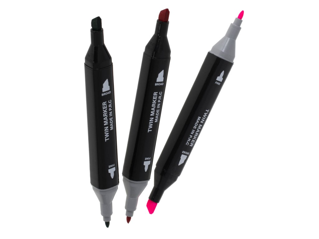 Každá značka má dva hroty, široká tip ideální pro malování větších ploch a tenký hrot pro vytváření tenčích a přesnějších linií pro přidávání detailů. Správný hrot zajistí, že kresba bude detailní nebo lépe zastřená.