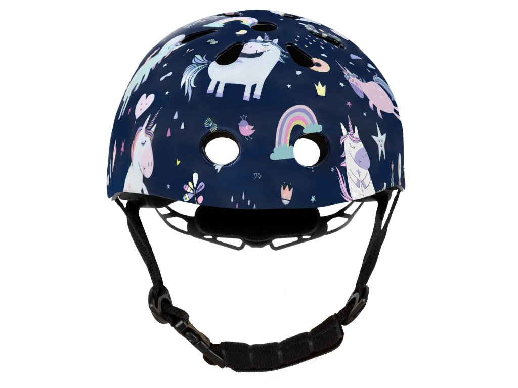 Konstrukce přilby poskytuje dítěti široké zorné pole a zajišťuje bezpečnou a pohodlnou jízdu.