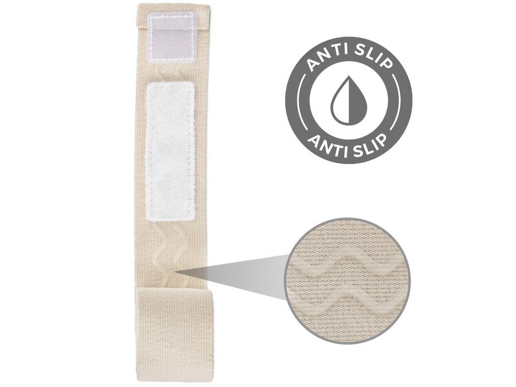 Pohodlí pro nejmenší je klíčové - elastická čelenka je šetrná k hlavičce dítěte, netlačí a rovnoměrně rozkládá tlak. Protiskluzové popruhy zabraňují posunu během používání.