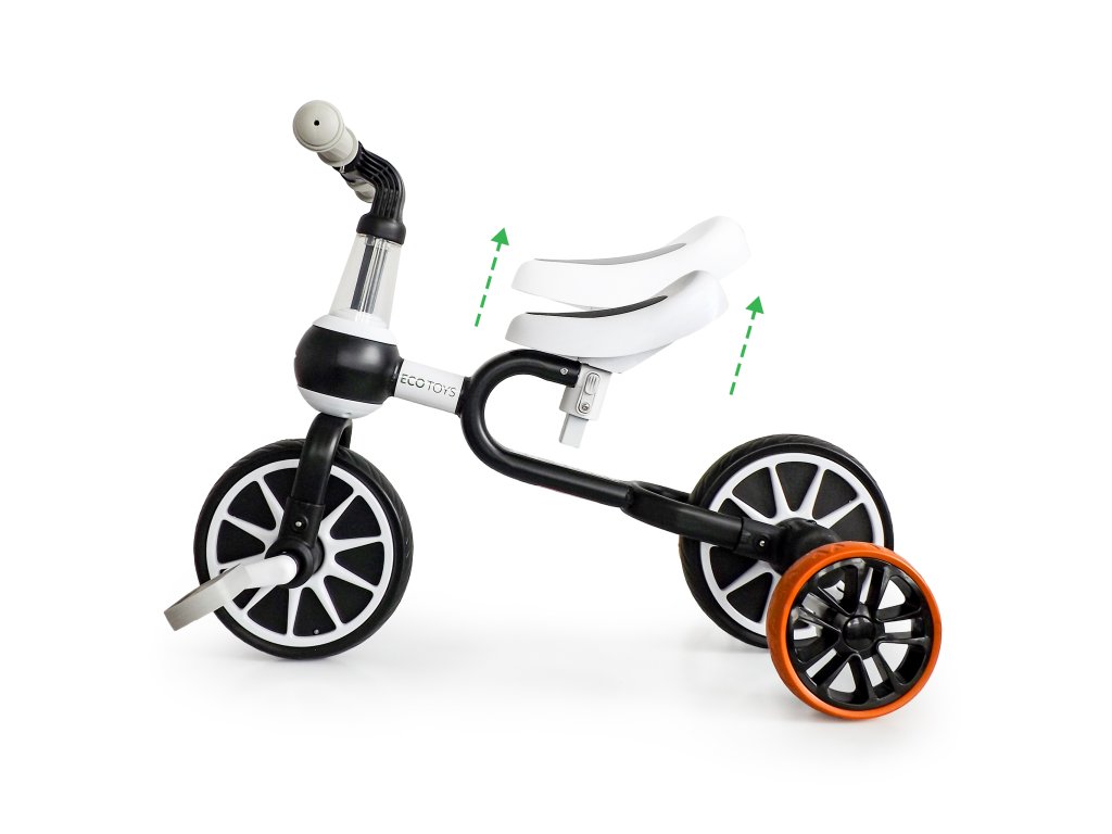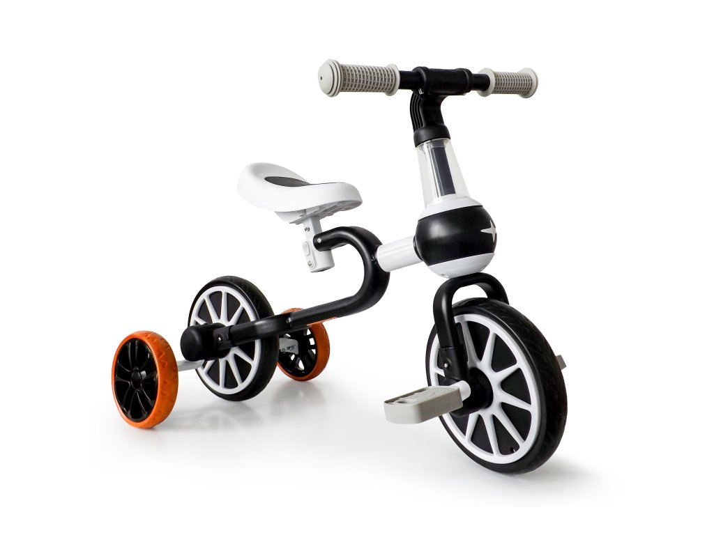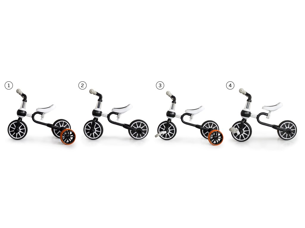 Speciálně navržená konstrukce kolo a výškově nastavitelné sedlo umožňují nastavit jeho funkce podle aktuálních schopností dítěte . Kolo lze používat ve 4 konfiguracích: