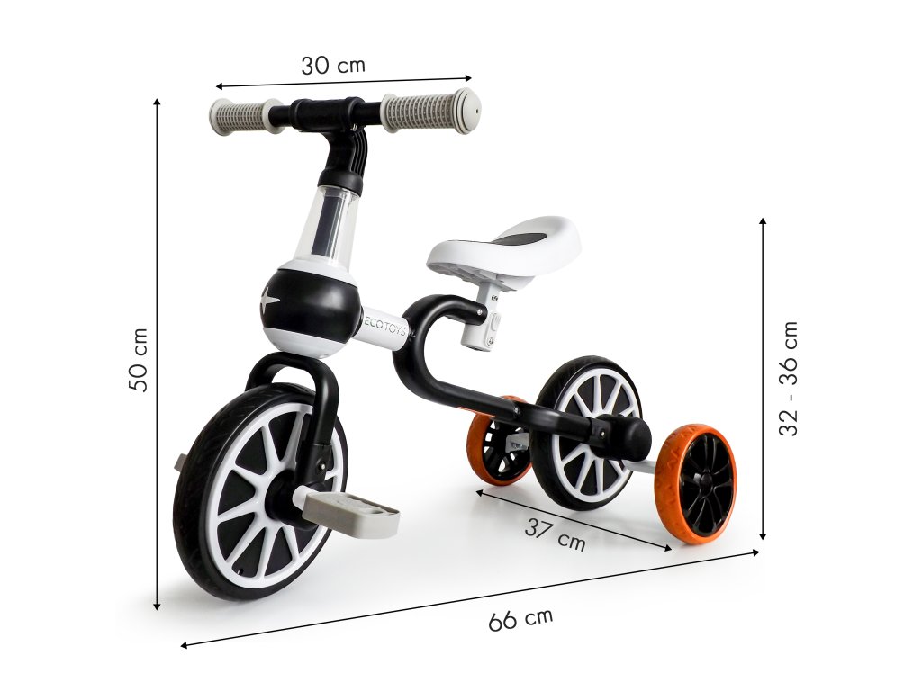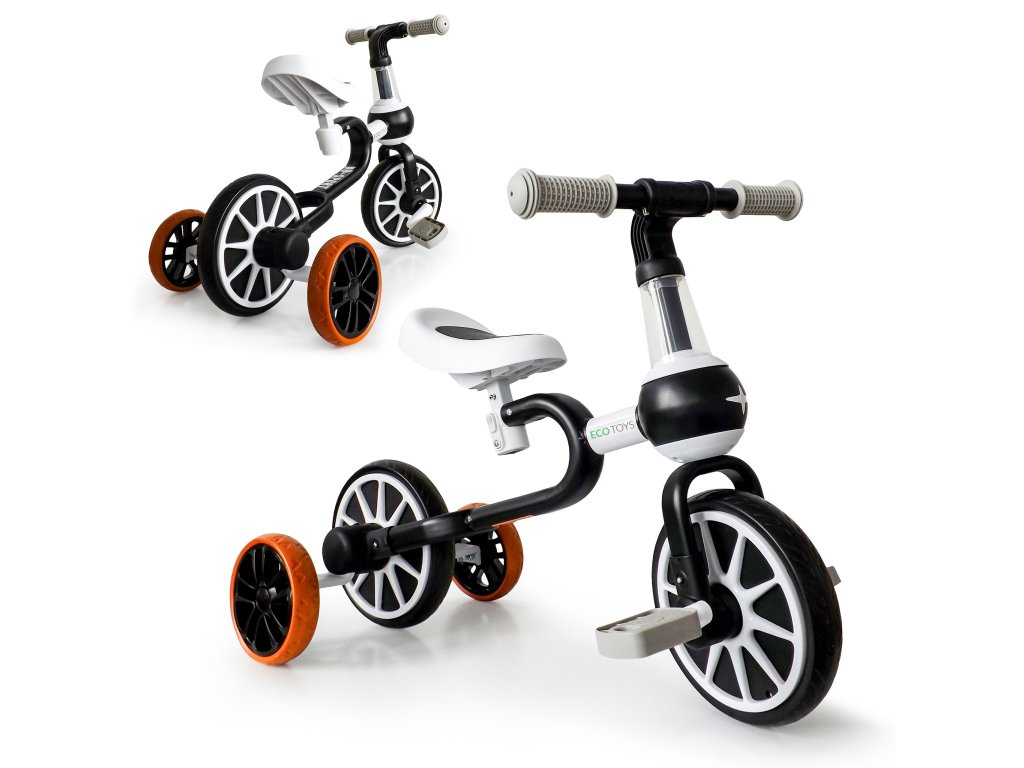 Odrážadlo 4v1 ECOTOYS čierno-biele s pedálmi