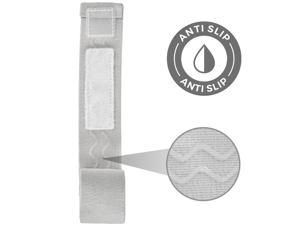 Pohodlí pro nejmenší je klíčové - elastická čelenka je šetrná k hlavičce dítěte, netlačí a rovnoměrně rozkládá tlak. Protiskluzové popruhy zabraňují posunu během používání.