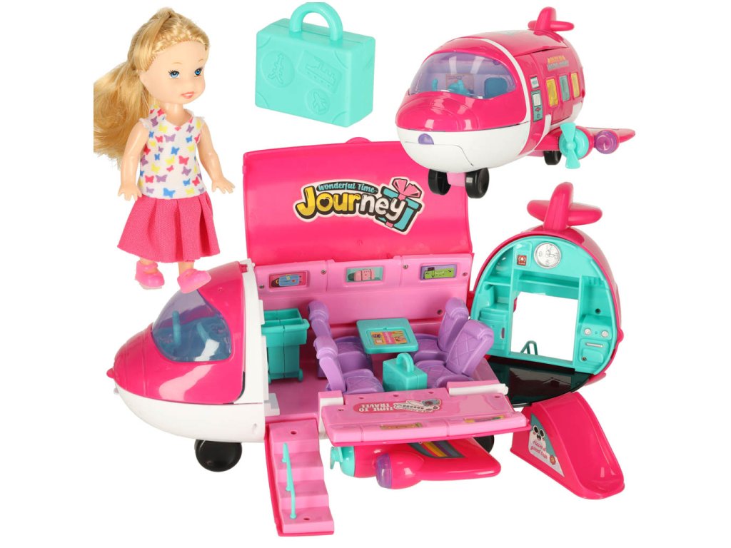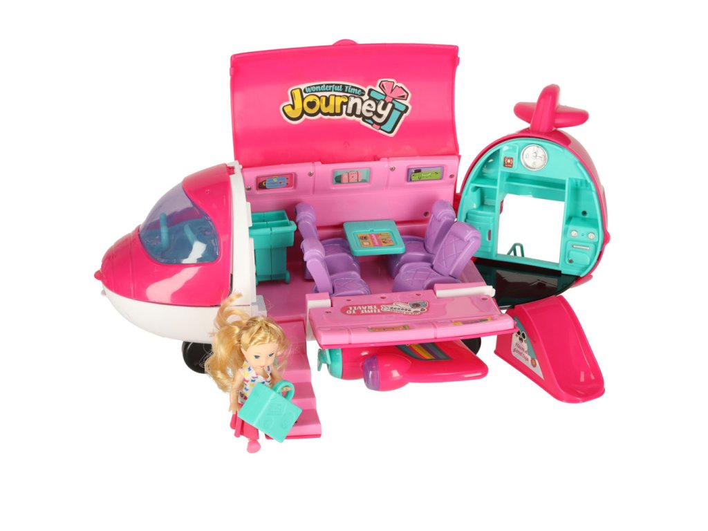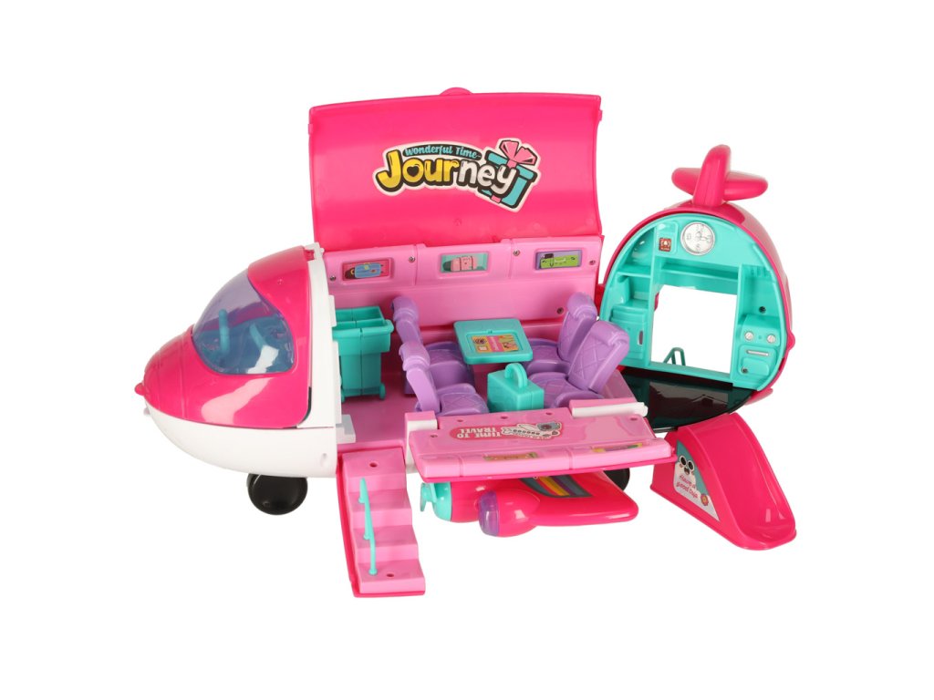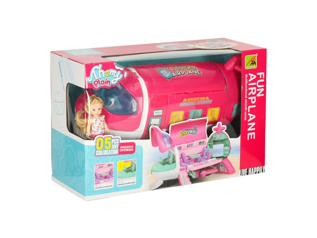 Osobní letadlo pro panenky 2v1 skládací příslušenství růžové