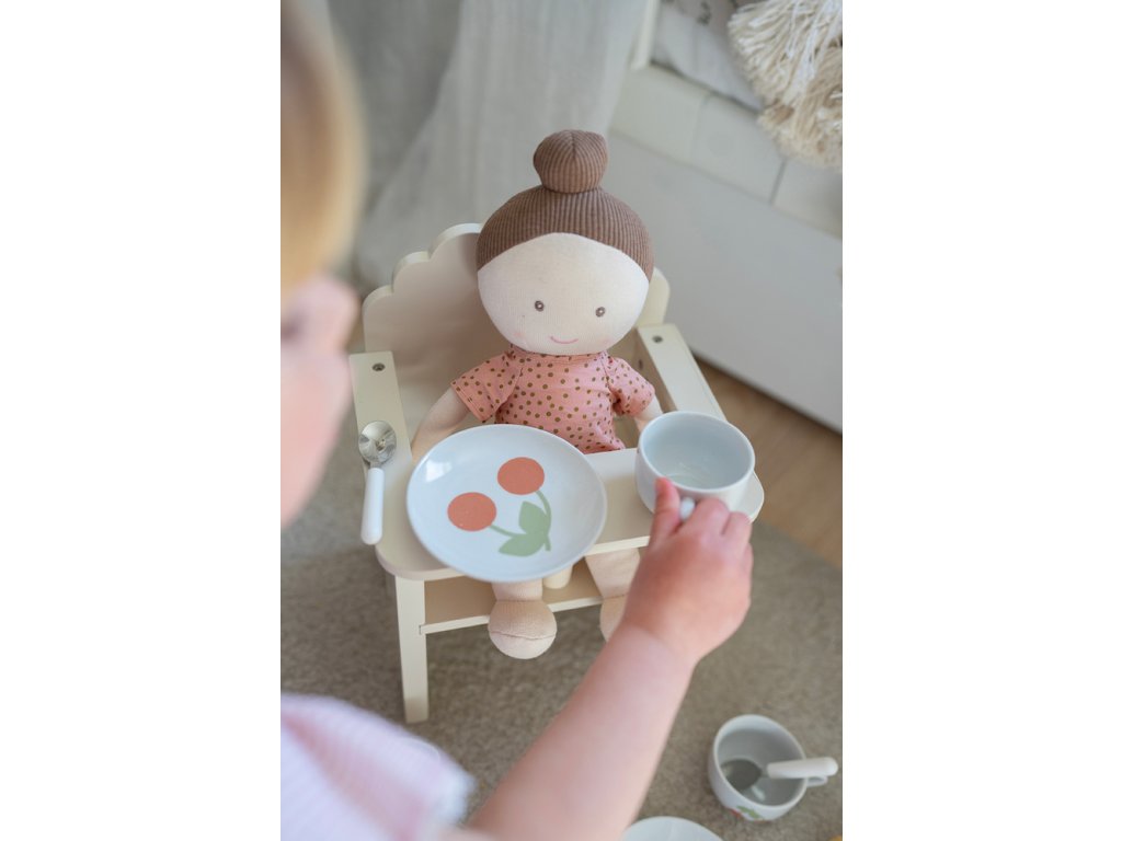 Roztomilá panenka Astrid Jabadabado je vyrobena z měkké organické bavlny a je připravena stát se vaší novou kamarádkou. Umístěte ji do kolébky pro panenku Jabadabado nebo ji vezměte na procházku v dřevěném kočárku pro panenky. Měli byste se o ni řádně starat a utěšovat ji, oblékat ji a krmit. Astrid je dodávána v exkluzivní dárkové krabici.
