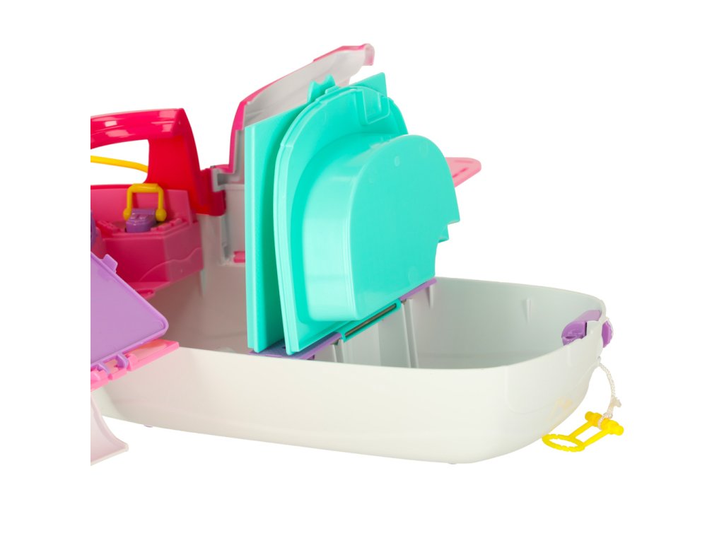 - Věk: 3+- Materiál: plast - Barva: růžová, bílá, žlutá, odstíny zelené a modré - Typ hračky: skládací člun - Pohyblivé části: Ano - Napájení: žádné Rozměry nádoby:
