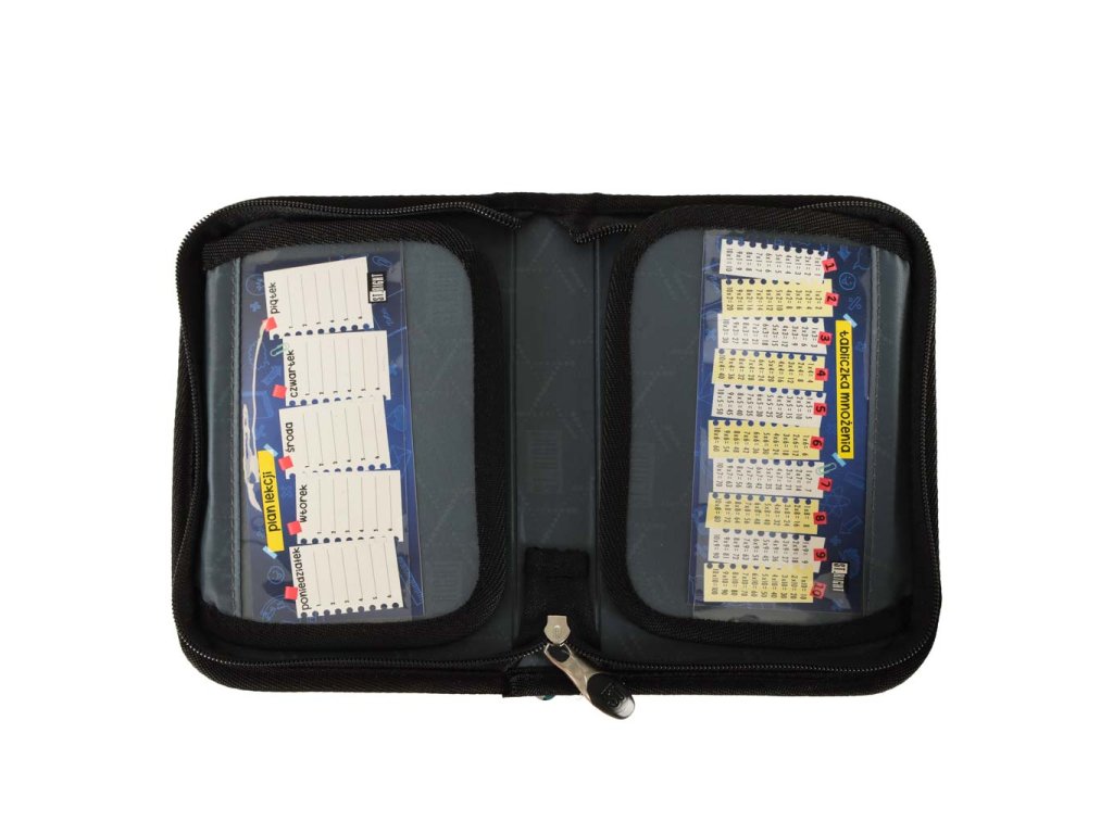 Penál se zipem a přihrádkami na školní potřeby. Obsahuje tabulku násobení a plán výuky. Ideální pro organizaci žákovských potřeb. Ergonomická rukojeť, kompaktní velikost.