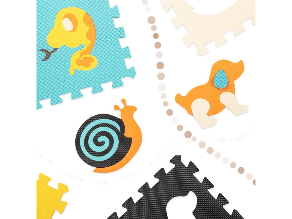 Pěnová podložka na puzzle pro děti 9 dílků barevných zvířat 85cm x 85cm x 1cm