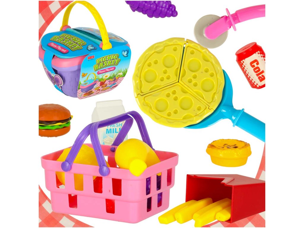 Piknikový koš koš s rychlým občerstvením pizza burger zásoby potravin piknikové občerstvení
