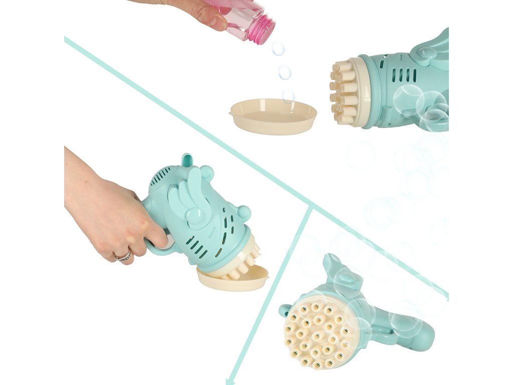 Pistole na mýdlové bubliny je produkt, který umožňuje rychlé vypouštění bublin, působivé a rozhodně mnohem zábavnější . Stačí jedno tlačítko a z hlavně vyletí spousta malých bublinek!