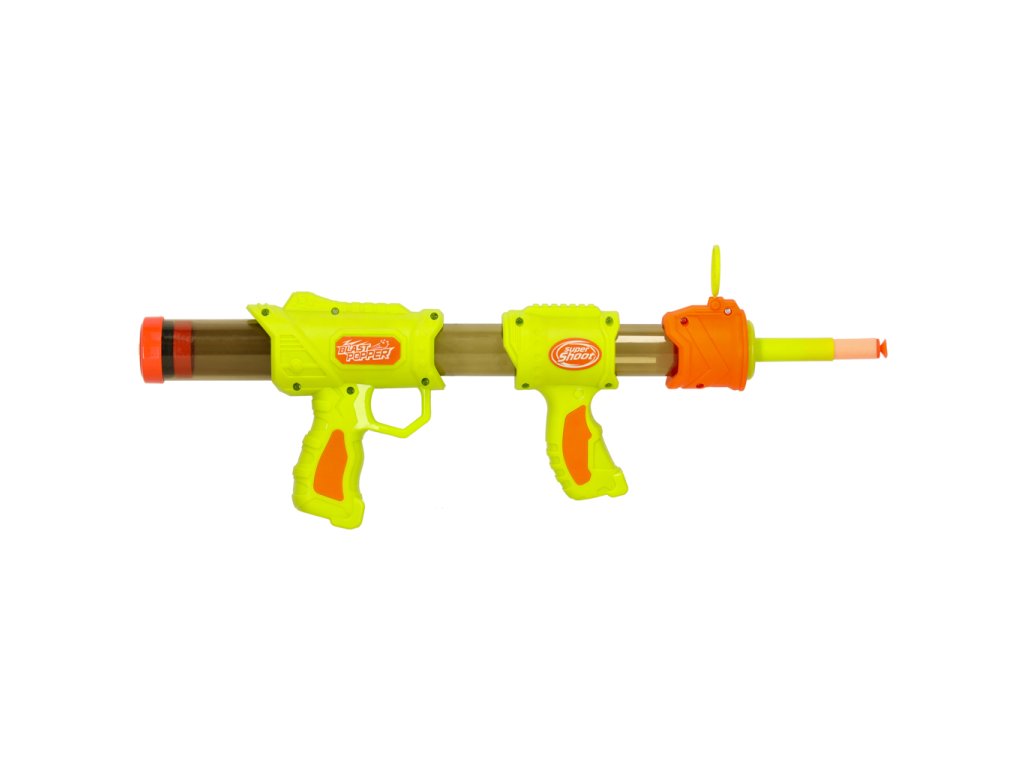Na výběr jsou tyto možnosti dva typy střeliva : pěnové kuličky a pěnové náboje, které se nabíjejí z přední části plastové hlavně. Jednoduchý nabíjecí mechanismus usnadňuje hru a zaručuje, že i ti nejmenší nebudou mít žádné problémy.