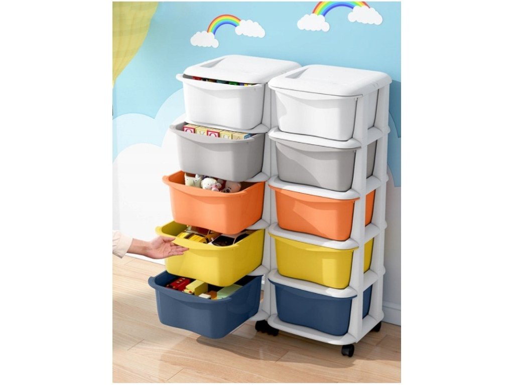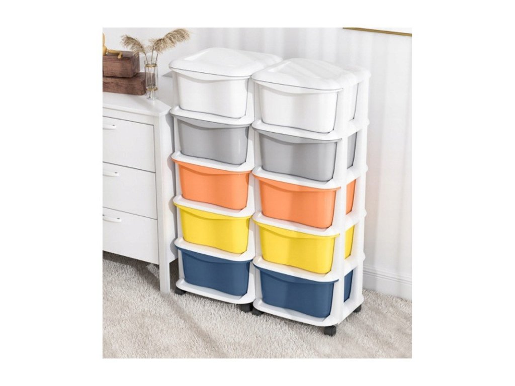 Plastový regál na kolečkách pro dětskou skříňku se zásuvkami, barevné varianty