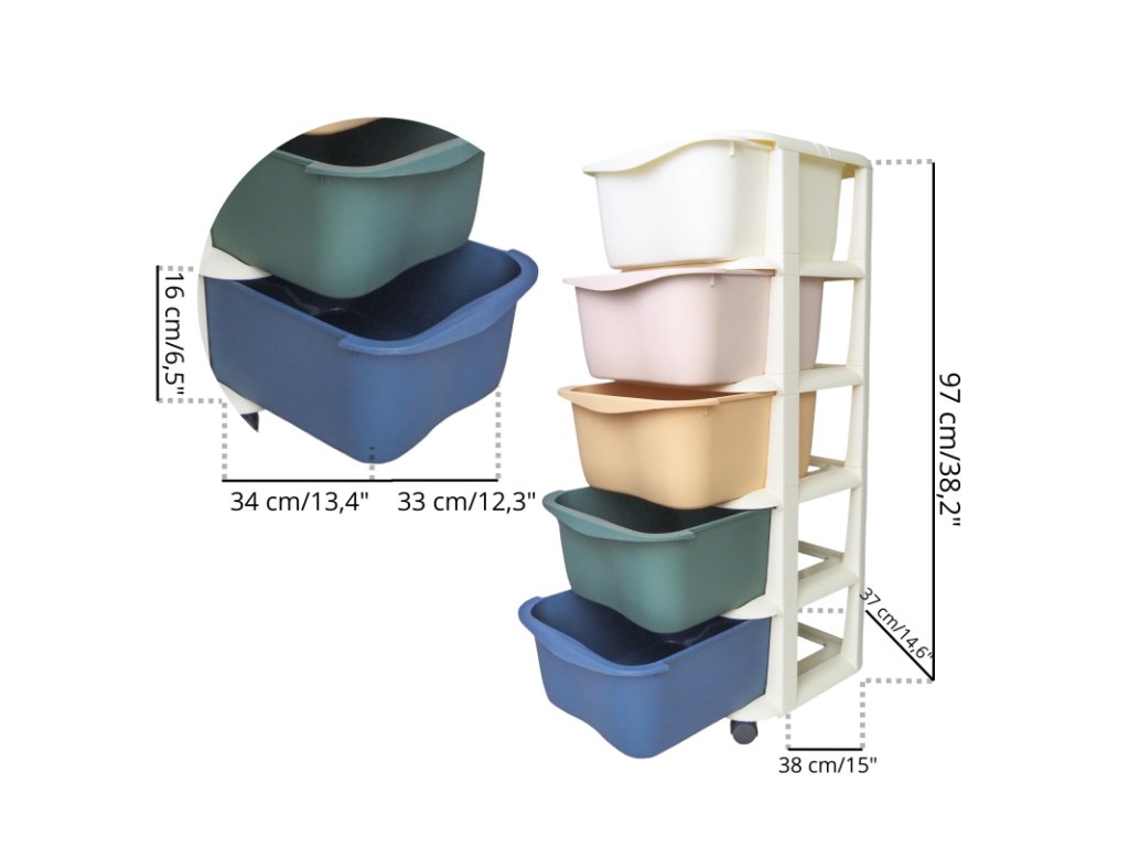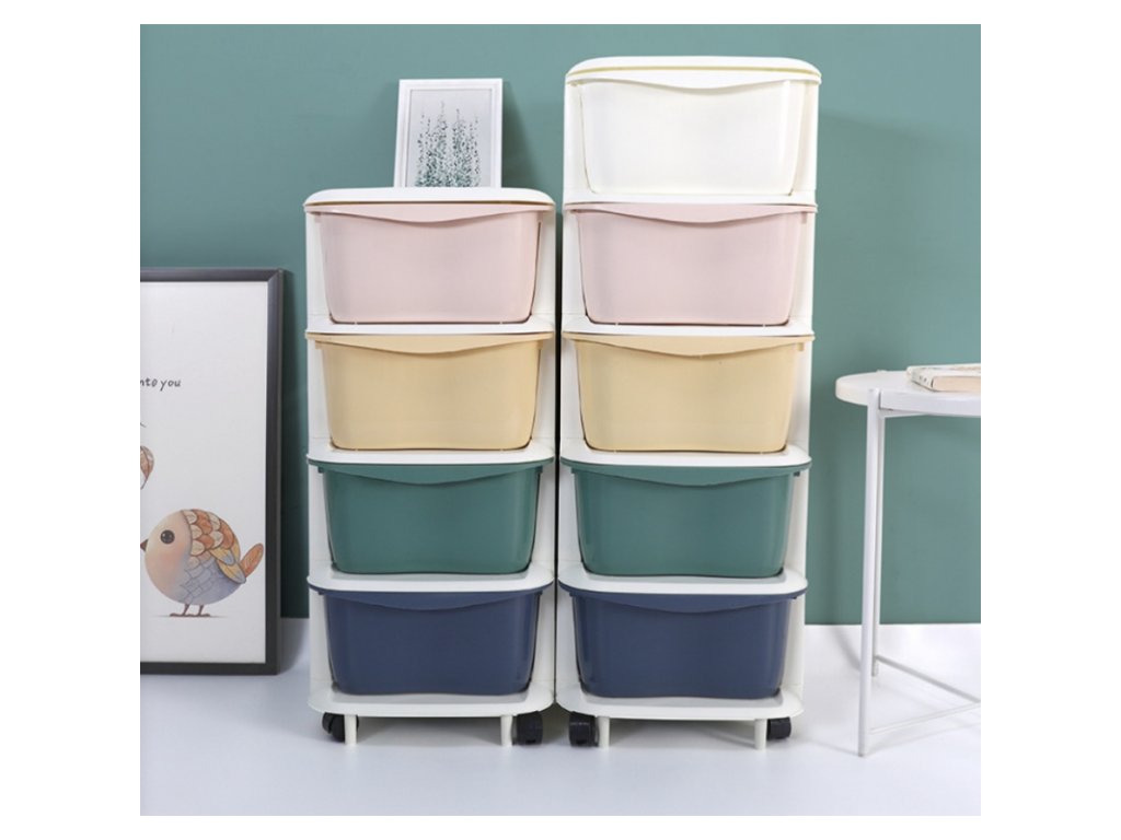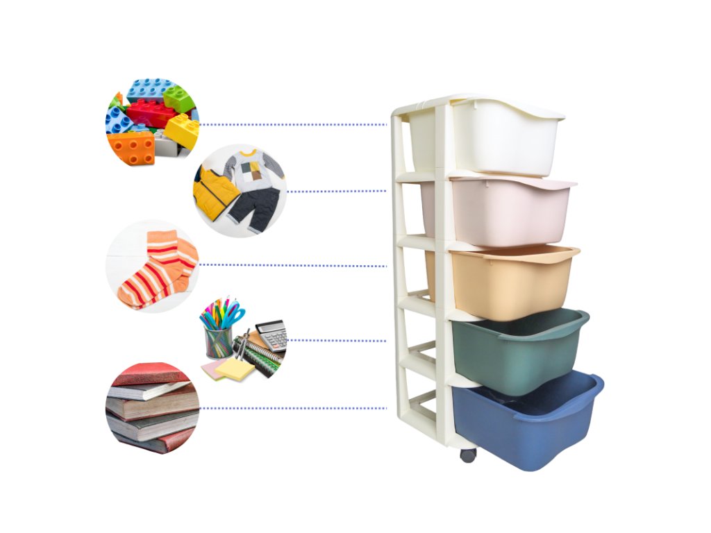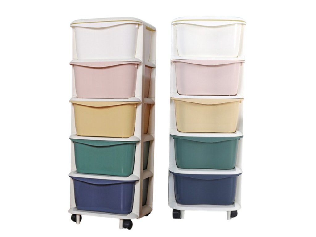 Plastový regál na kolečkách pro dětskou skříňku se zásuvkami