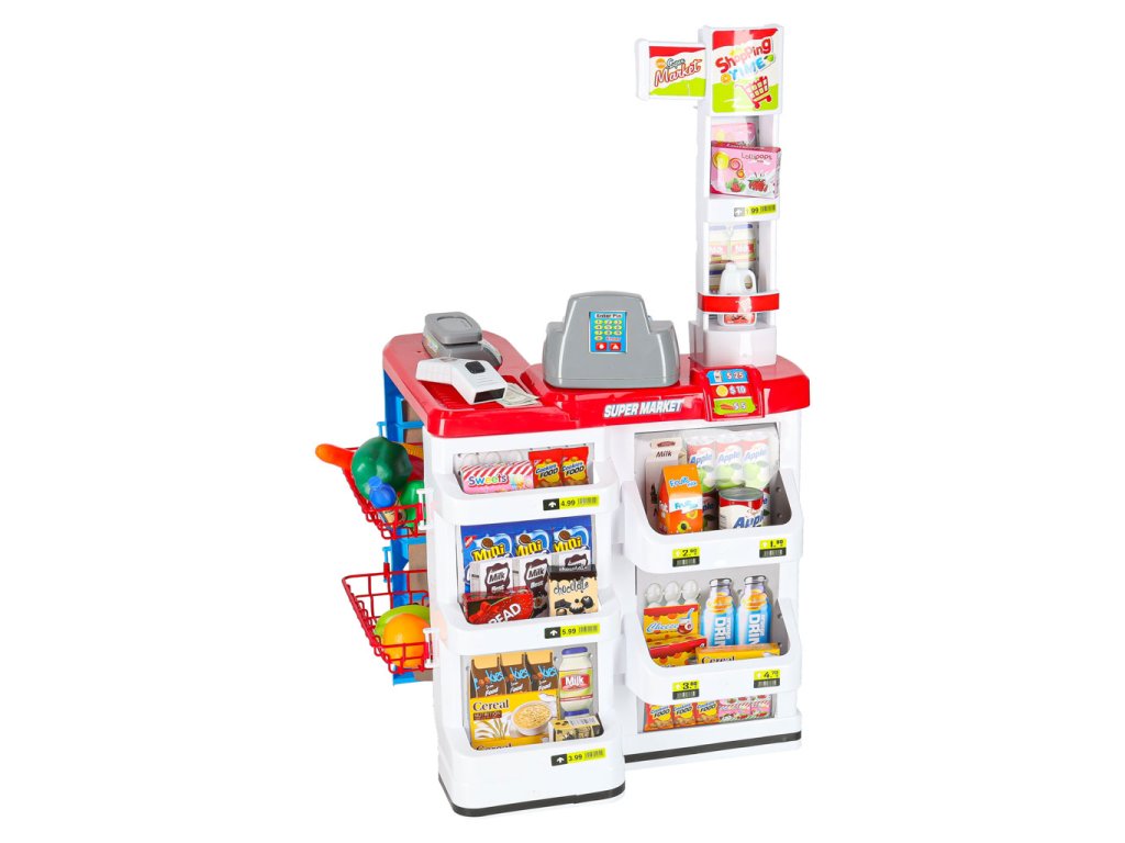 Stejně jako v profesionálním obchodě je hračka vybavena pokladnou s otevírací zásuvkou, snímačem čárových kódů a váhou.
