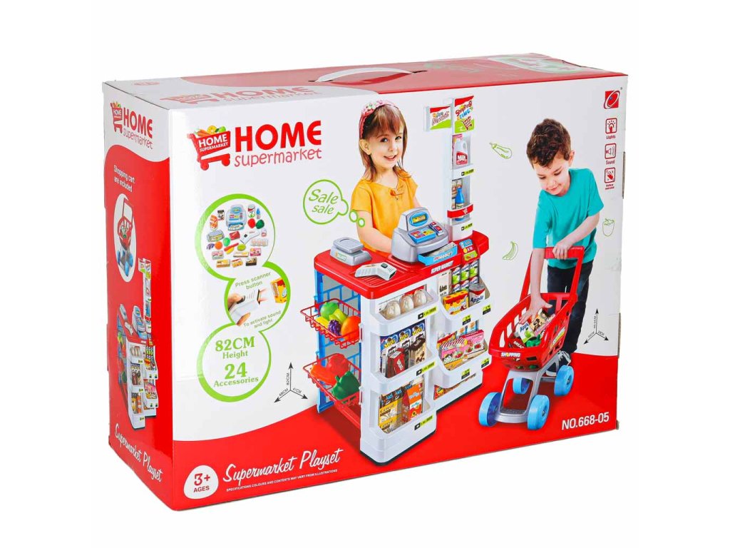 V sadě najdete všechny potřebné prvky k vytvoření skutečného obchodu s potravinami.