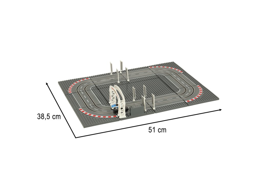 S touto stavebnicí pro děti od 8 let si můžete postavit a ovládat vlastní dráhu. Obsahuje 8 bloků dráhy, 2 autíčka, ovladače, napájecí kabel, látku a samolepky. Rozměry: 38,5 x 51 cm. 38 x 28 x 7,5 cm.