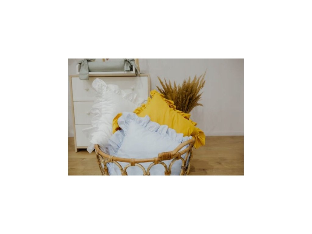Polštář je zdoben sladkým volánkem.