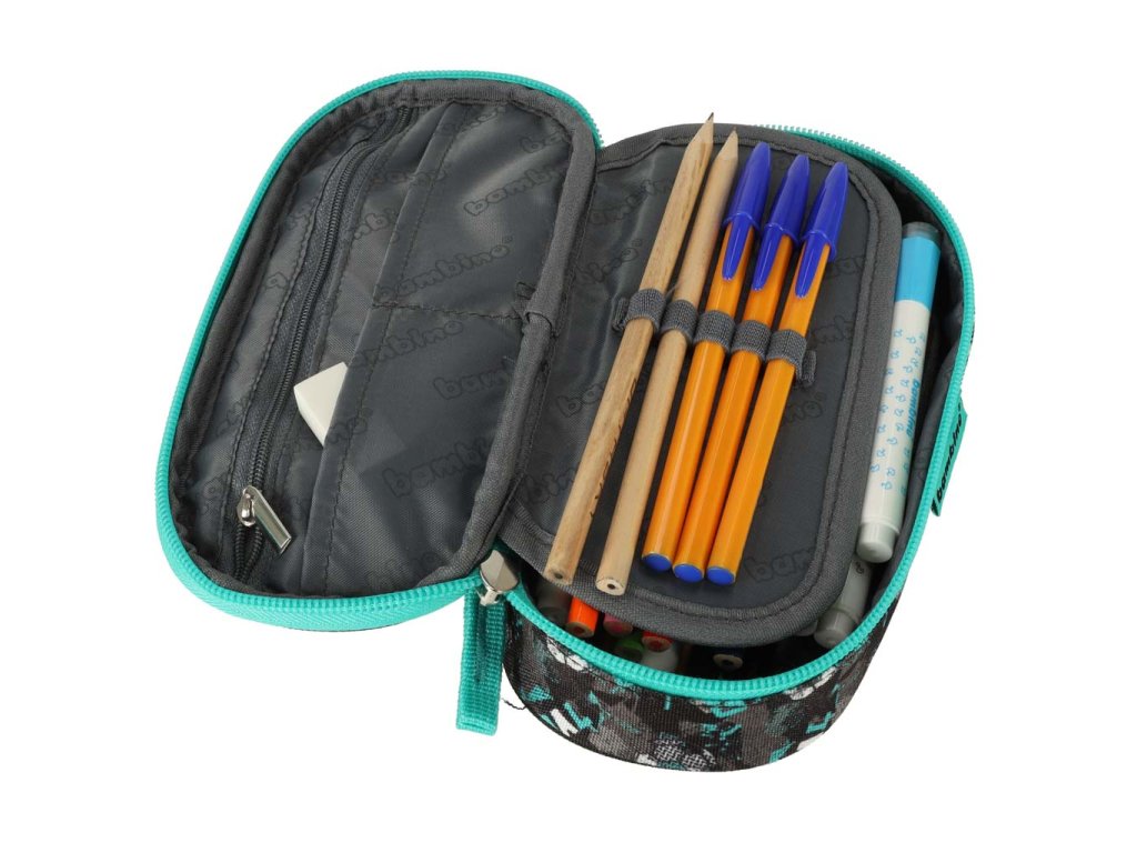 Praktický penál s vnitřními přihrádkami, chlopněmi a spoustou přídavných prvků pro uspořádání školních potřeb. S grafickým motivem, rozvrhem hodin a násobilkou. Ergonomická rukojeť, zapínání na zip. Rozměry: 21x14x3,5 cm.