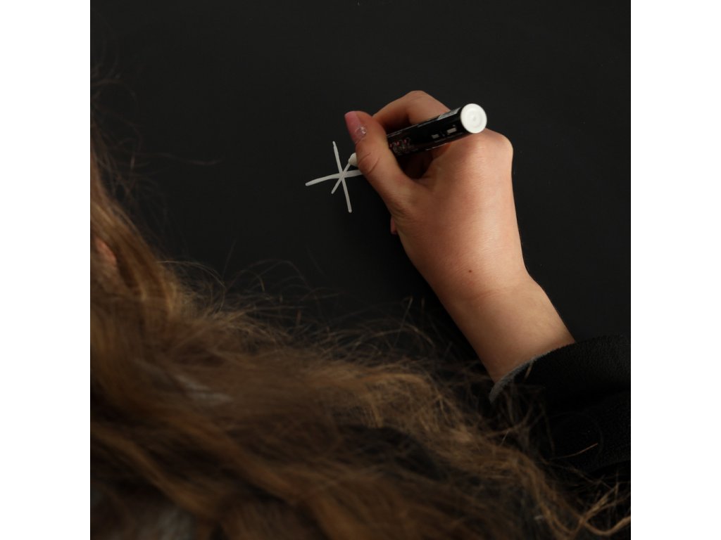 Křídový inkoust na vodní bázi nezanechává stopy a lze jej odstranit vlhkým hadříkem - beze šmouh a stop. Kromě toho nezanechávají skvrny na rukou ani nezvedají prach než tradiční křída.