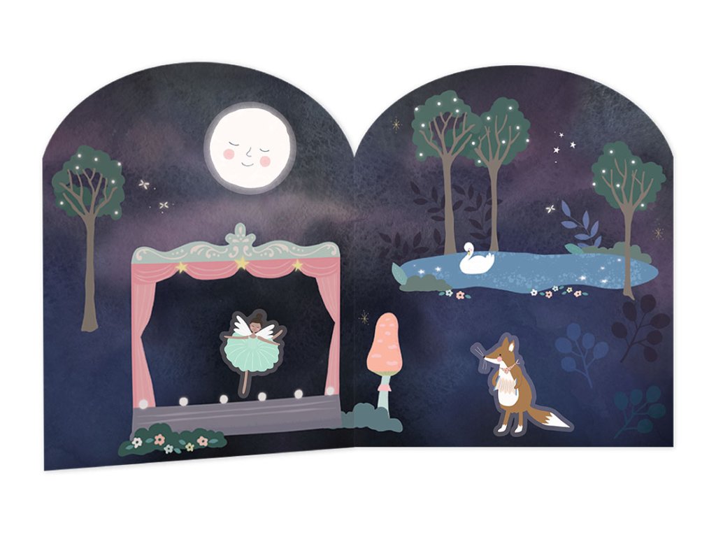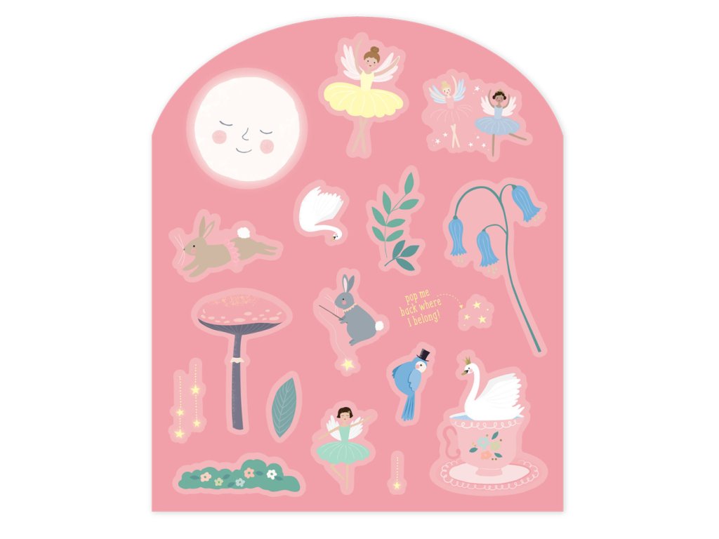 Pracovní sešit Floss&&Rock Stickers Stick & Play je zábavný i naučný. Obsahuje více než 50 tvarovaných, opakovaně použitelných samolepek. Součástí jsou 2 rozkládací scény k vytváření a vymýšlení příběhů pomocí samolepek. Na zadní straně je samostatná část, kde přiřadíte samolepky k jejich tvaru. Tohle zabaví malé děti na dlouhé hodiny! Pevný hřbet knihy lze složit zcela naplocho, takže je ideální na cesty.