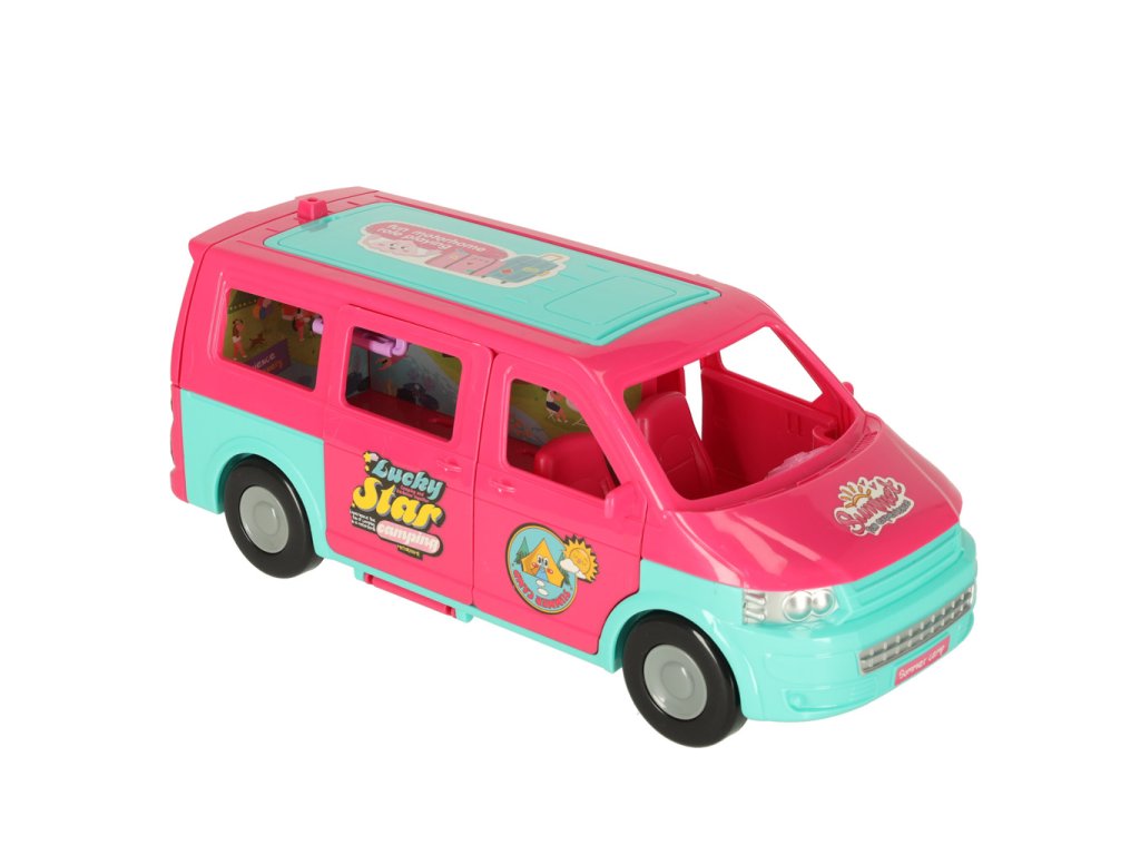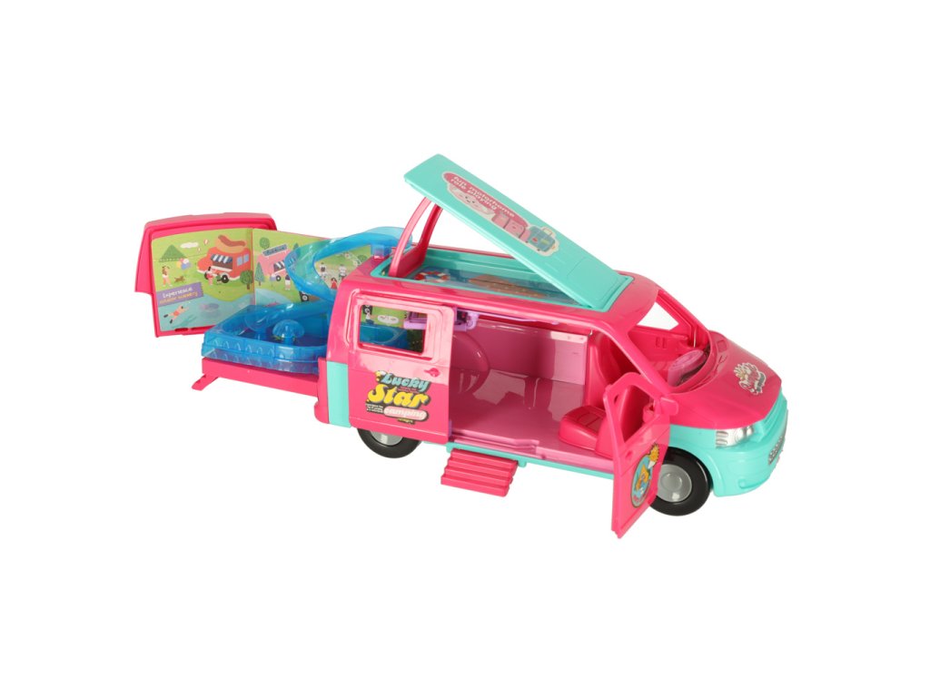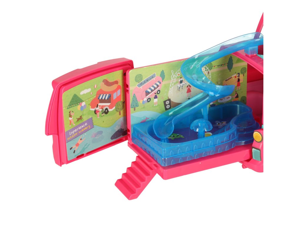 - Věk: 3+- Materiál: plast - Barva: růžová, zelená, modrá, pestrobarevná - Typ hračky: skládací karavan - Pohyblivé části: ano- Napájení: žádné