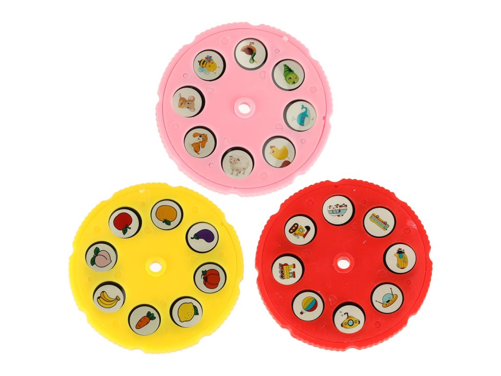 Obrázky lze měnit otáčením disku. Bude zajímavou výzvou pokusit se nakreslit všechny obrázky ze tří disků. Zvládne to vaše ratolest?